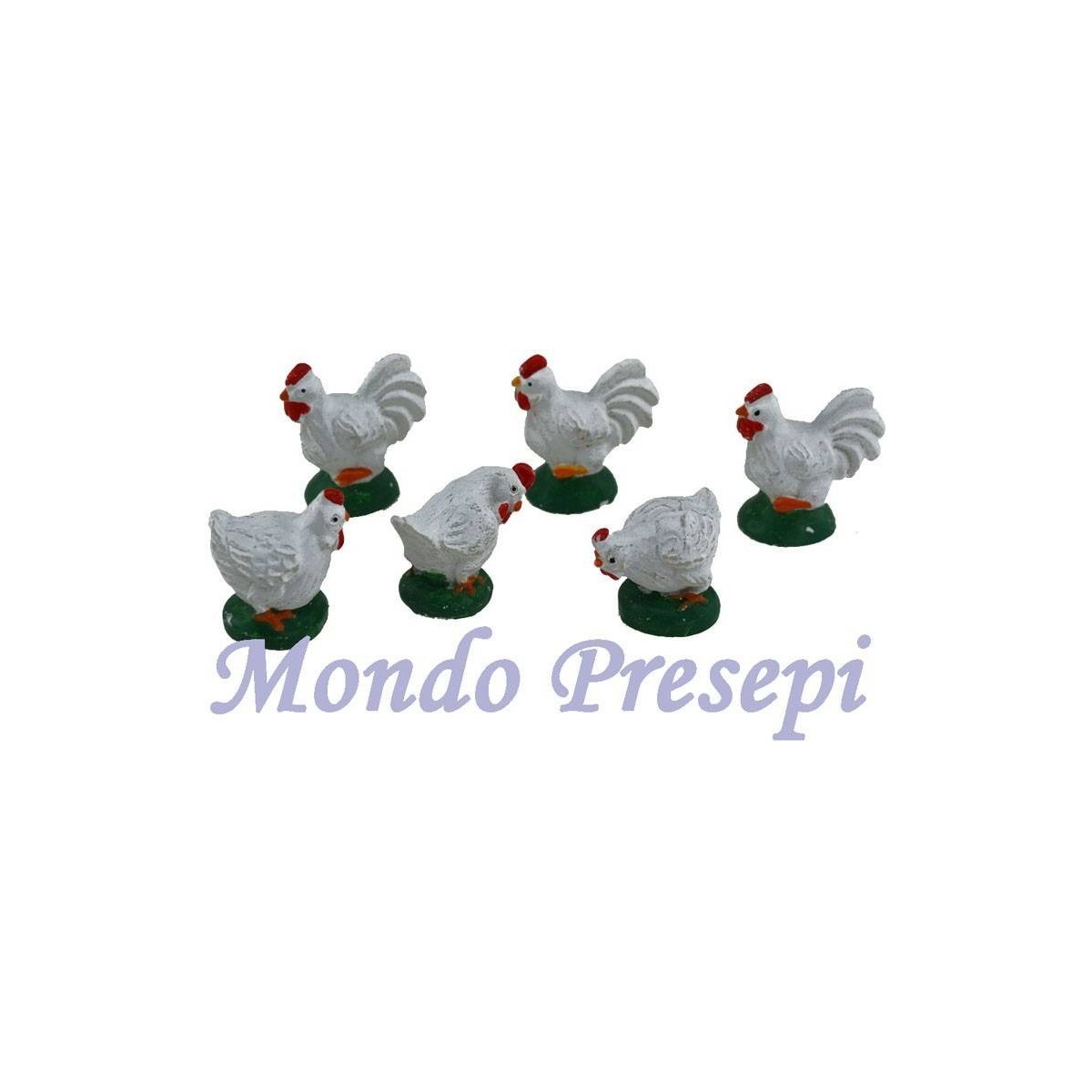 Coloca 6 gallinas de resina de 3,5-4 cm Mundo Pesebre