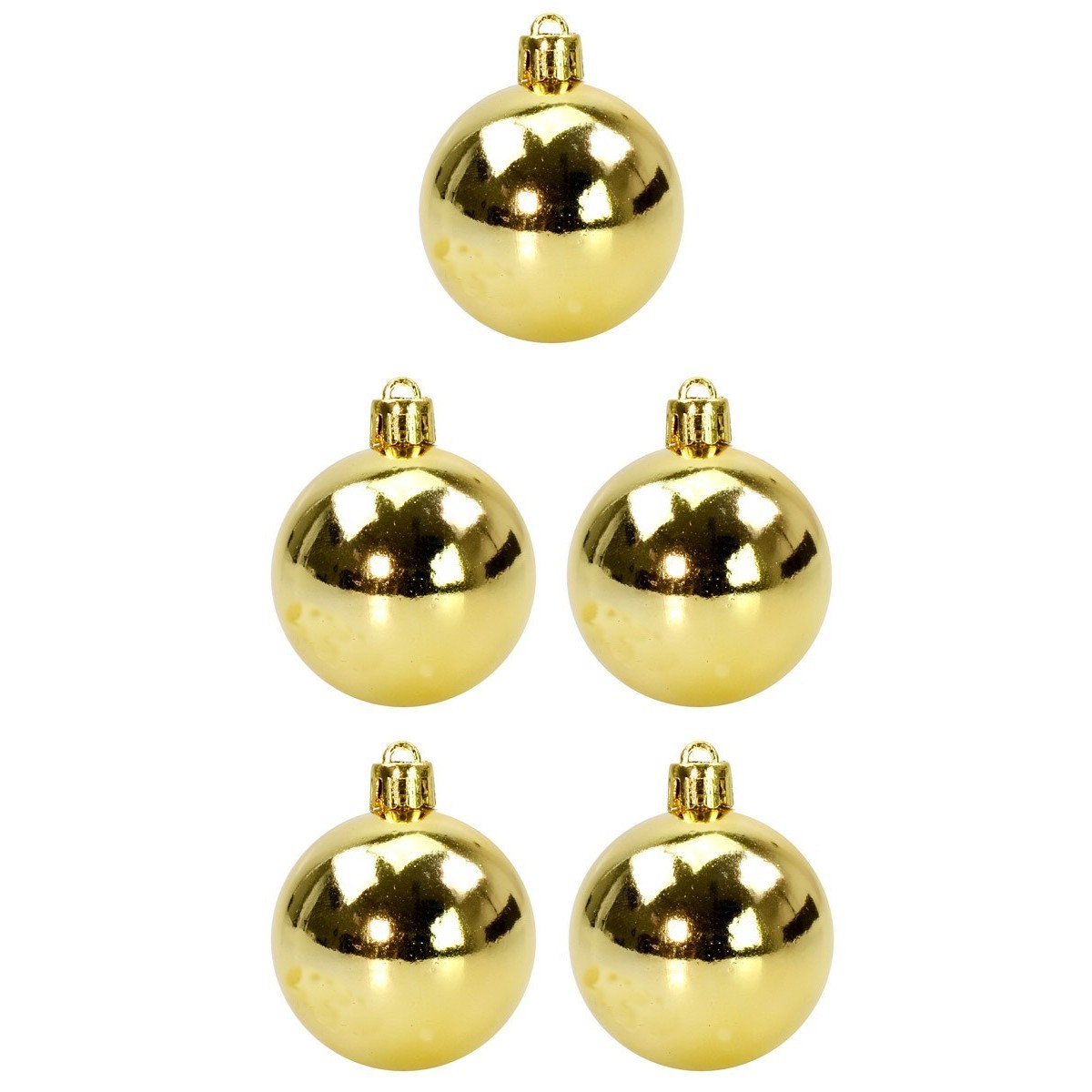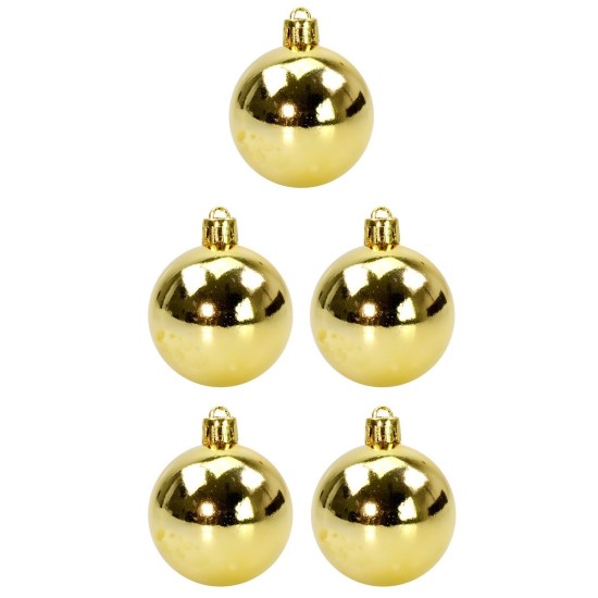 Conjunto compuesto por 5 bolas de color oro metalizado de 4 cm de diámetro para árbol de Navidad. En nuestra tienda en línea están disponibles bolas del mismo modelo en otros tamaños.