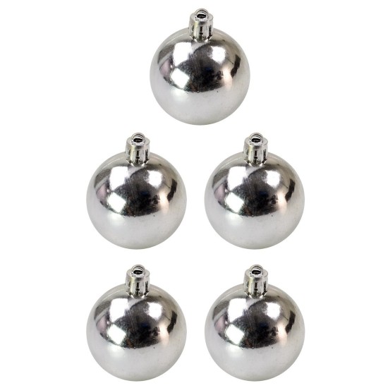 Conjunto compuesto por 5 bolas de color plata metalizado de 4 cm de diámetro para el árbol de Navidad. En nuestra tienda en línea están disponibles bolas del mismo modelo en otros tamaños.