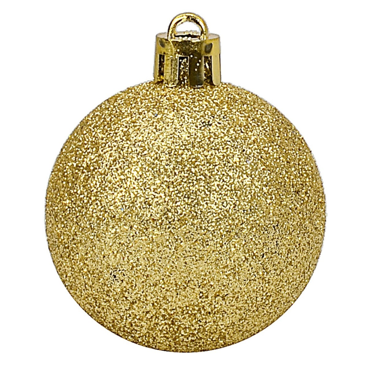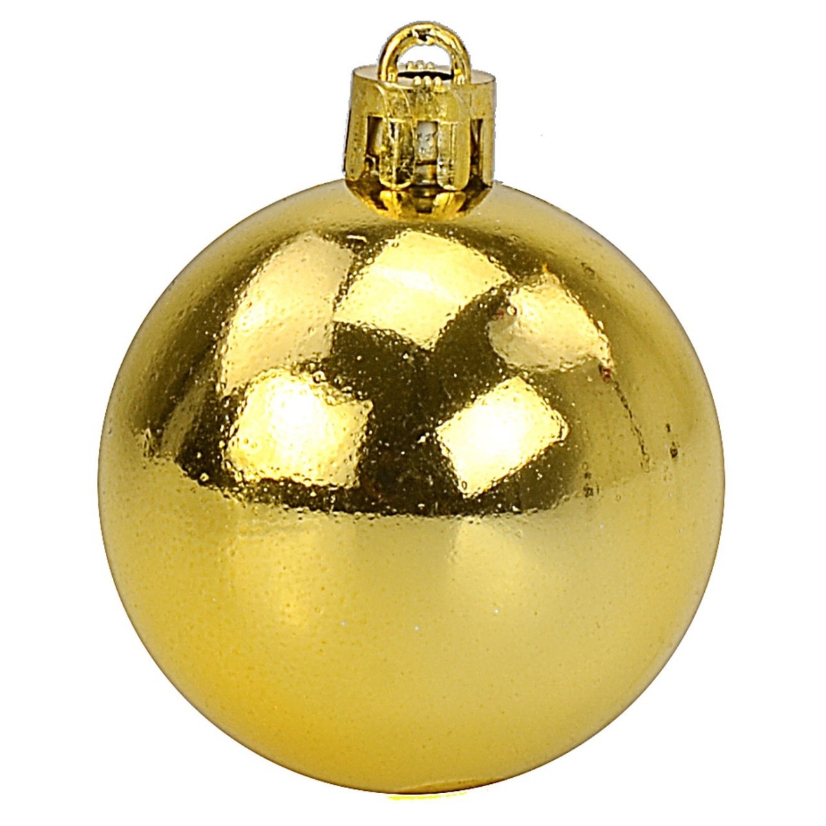 Conjunto compuesto por 20 esferas de color oro en versiones metalizadas, con brillo y satinadas, con un diámetro de 4-5 y 6 cm para árbol de Navidad. En nuestra tienda en línea están disponibles bolas del mismo modelo en otras medidas.