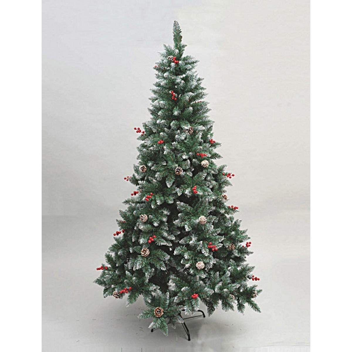 Árbol de Navidad con puntas blanqueadas de 150 cm de altura con 362 ramas, el pino ya está decorado con bayas y piñas pero puede ser adornado aún más con los muchos accesorios disponibles en la CATEGORÍA o iluminado con las luces presentes en la SECCIÓN dedicada.