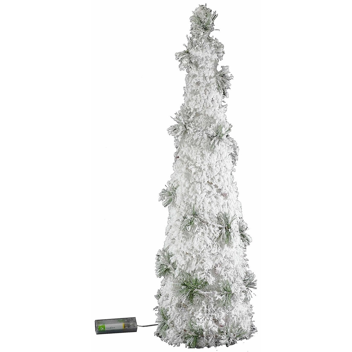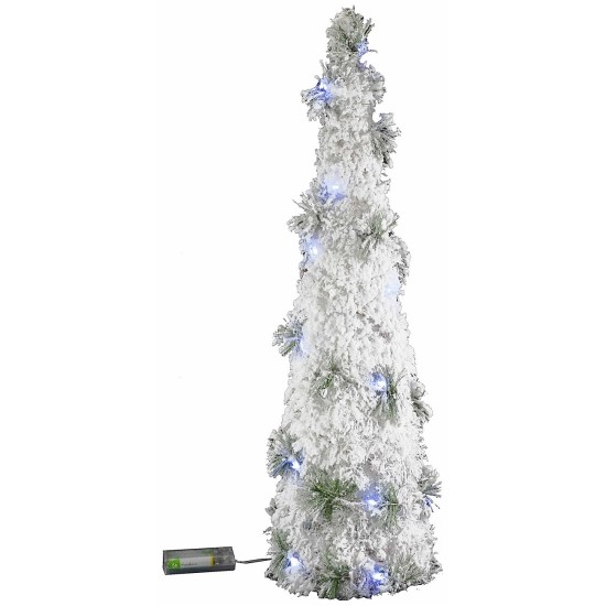 Árbol de Navidad nevado con ramas entrelazadas enriquecidas con agujas de pino y bayas rojas, el artículo está iluminado con micro LED a pilas (2xAA no incluidas).