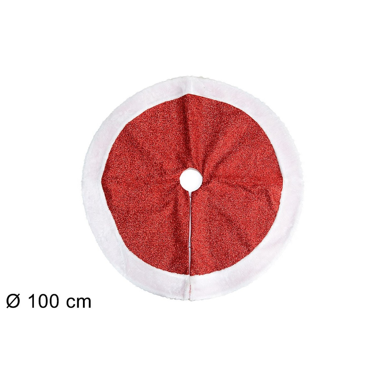 Alfombra roja con brillo y borde blanco ø 100 cm para cubrir el árbol de Navidad