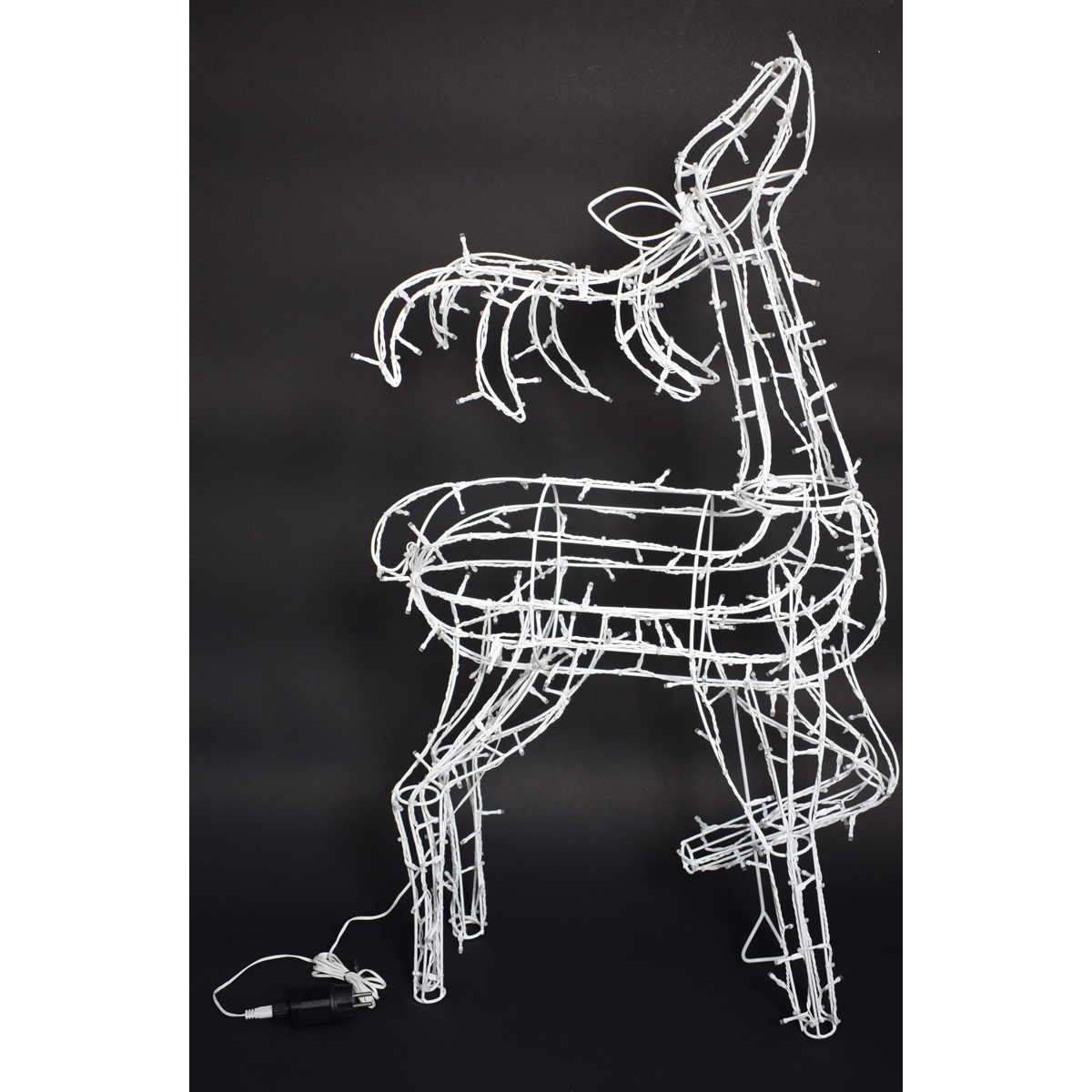 Figura decorativa en forma de reno luminoso, realizada con estructura de metal revestida con 260 led de luz blanco cálido.