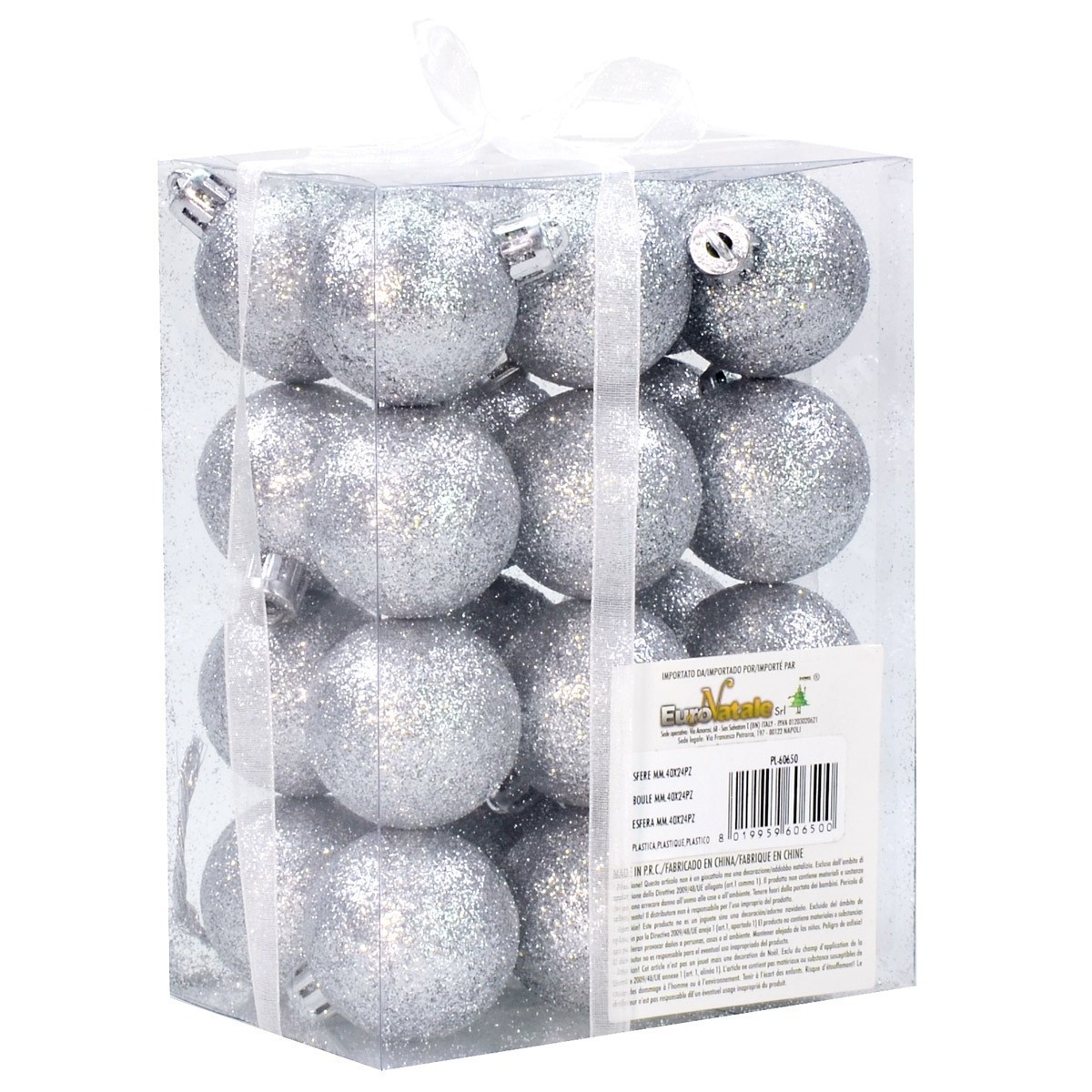 Juego de 24 bolas de plata brillante ø 4 cm para árbol de Navidad