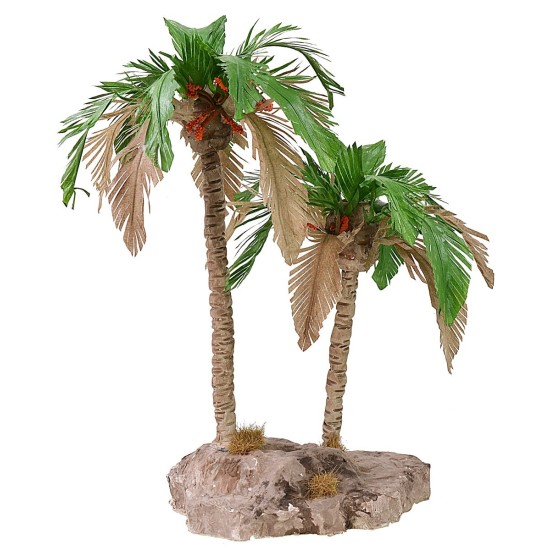 Base rocosa con dos palmeras bien acabadas, ideales para la vegetación en el pesebre y modelismo.