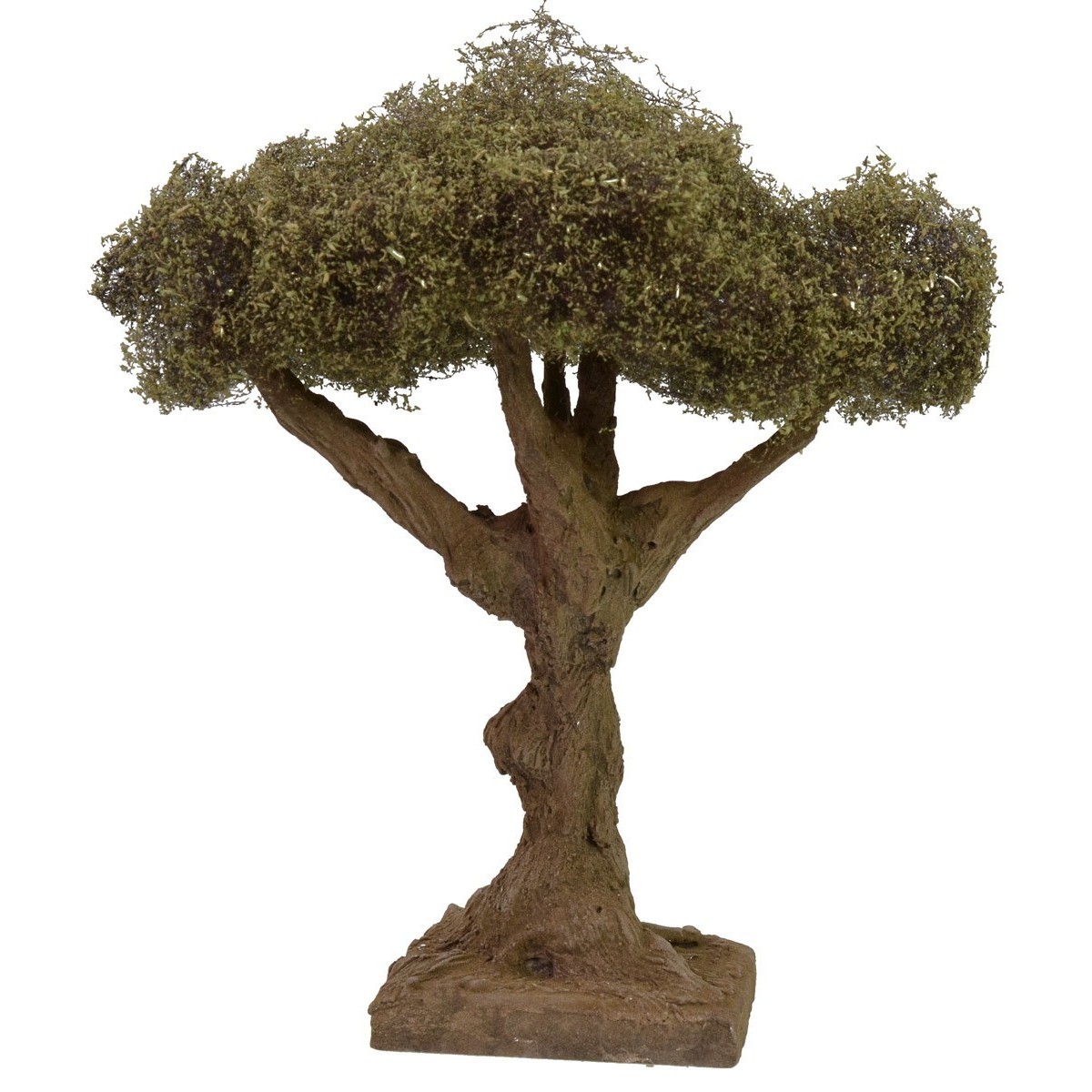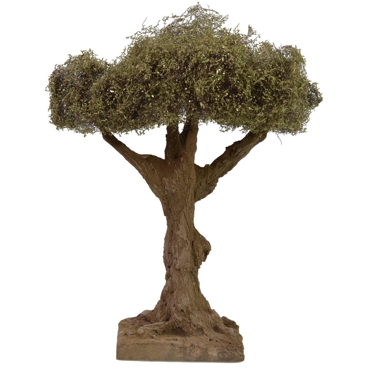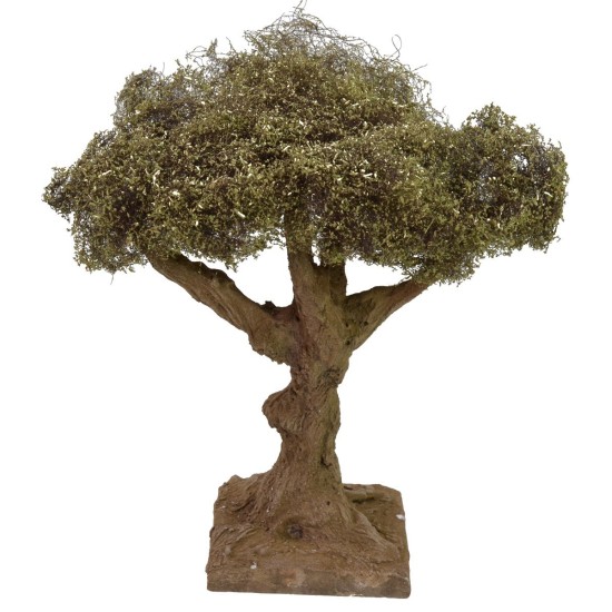 Olivo con base, caracterizado por un follaje denso, realizado con la planta "Teloxis Aristata", que hace que el artículo sea muy realista. Producto hecho artesanalmente y bien acabado en los más mínimos detalles, ideal para enriquecer tu Belén con vegetación verde.