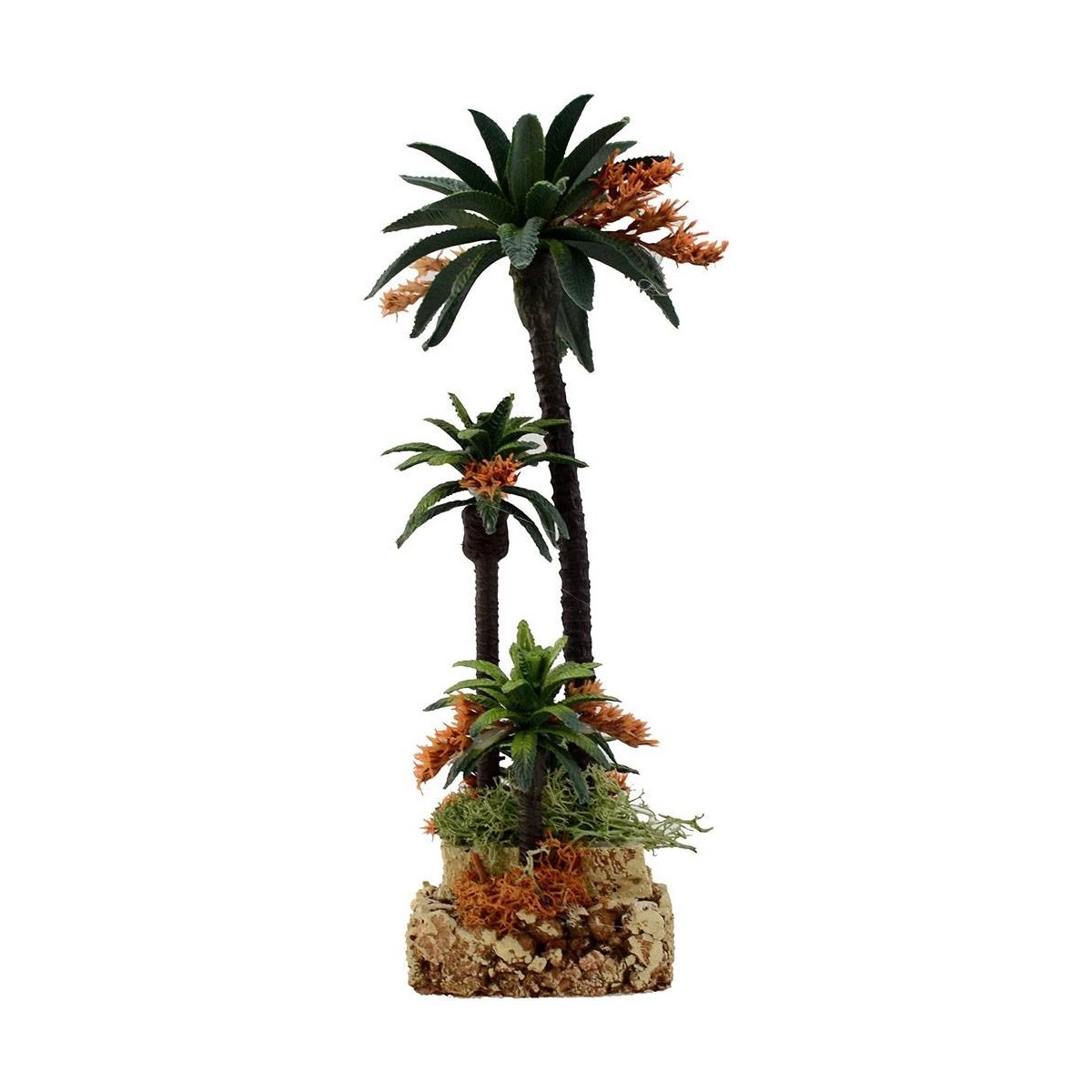 Dos palmeras de 20-12 cm con 2 enanas de 8-6 cm, para crear la vegetación en el pesebre Oriental.