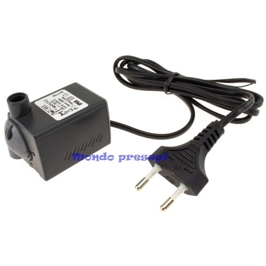 Bomba "MIMOUSE" de inmersión. Se recomienda su uso para belenes hechos a mano, perfecto para la realización de fuentes, arroyos y molinos, gracias al flujo de agua regulable. Puedes encontrar el tubo compatible, aquí abajo, en los productos relacionados.