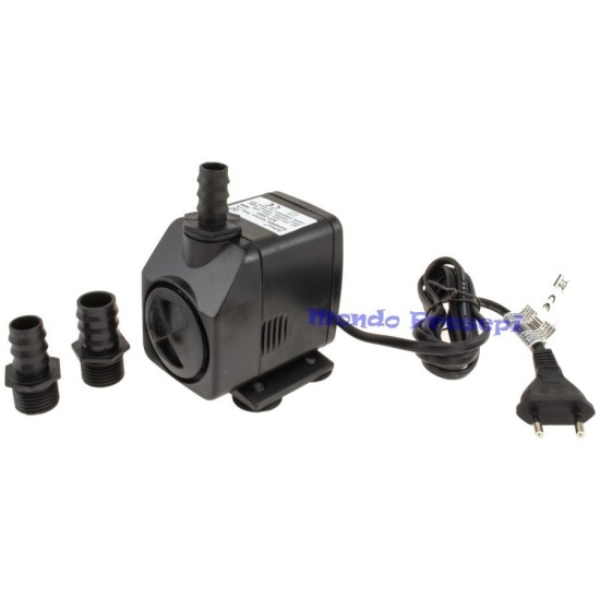 Bomba para belén hecho a mano que funciona con corriente, ideal para la realización de fuentes y arroyos, de tamaño medio grande, de ciclo continuo, con flujo de agua regulable. Dotada de doble conexión de 15-18 mm, compatible con tubo TB4. Puedes encontrarlo aquí abajo, en los productos relacionados.