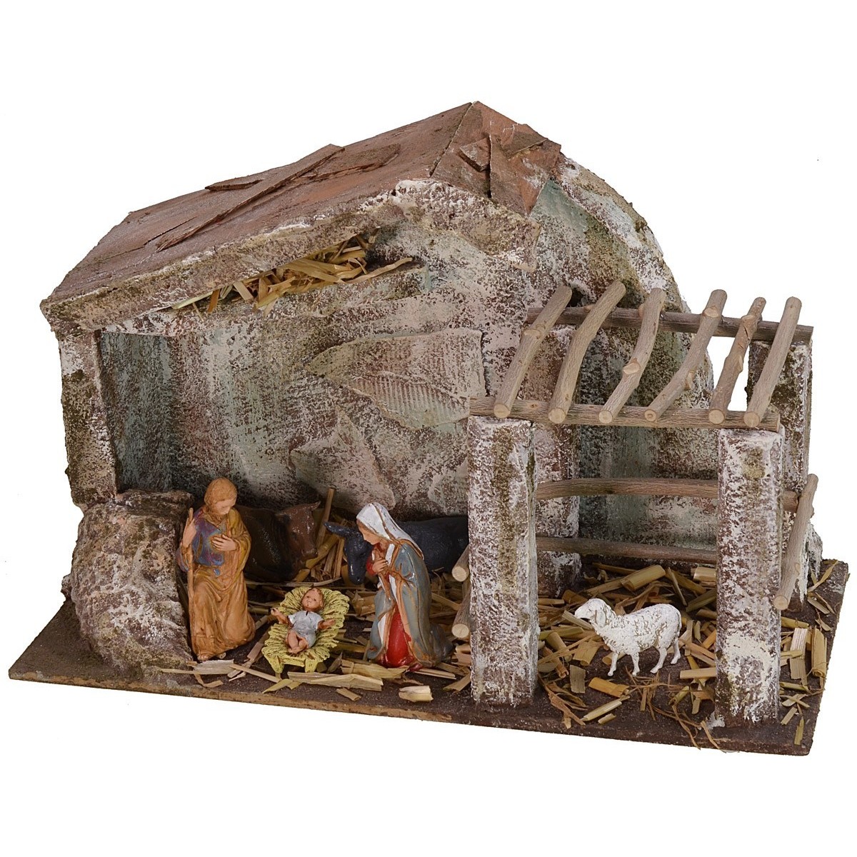 Choza con cercado bien acabado: la escenografía se caracteriza por una choza delineada por una porción de techo triangular y un cercado descubierto. Todo alrededor hay paja. La choza está realizada enteramente en Italia por manos artesanas expertas utilizando poliestireno, madera y corcho. Combinada con la siguiente choza, la Natividad Landi Moranduzzo serie 8 cm altura real 7 cm.