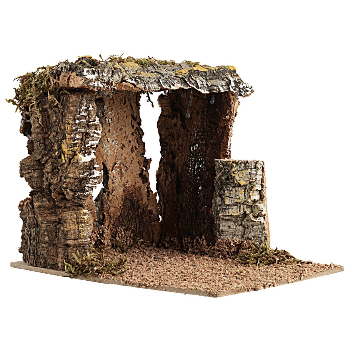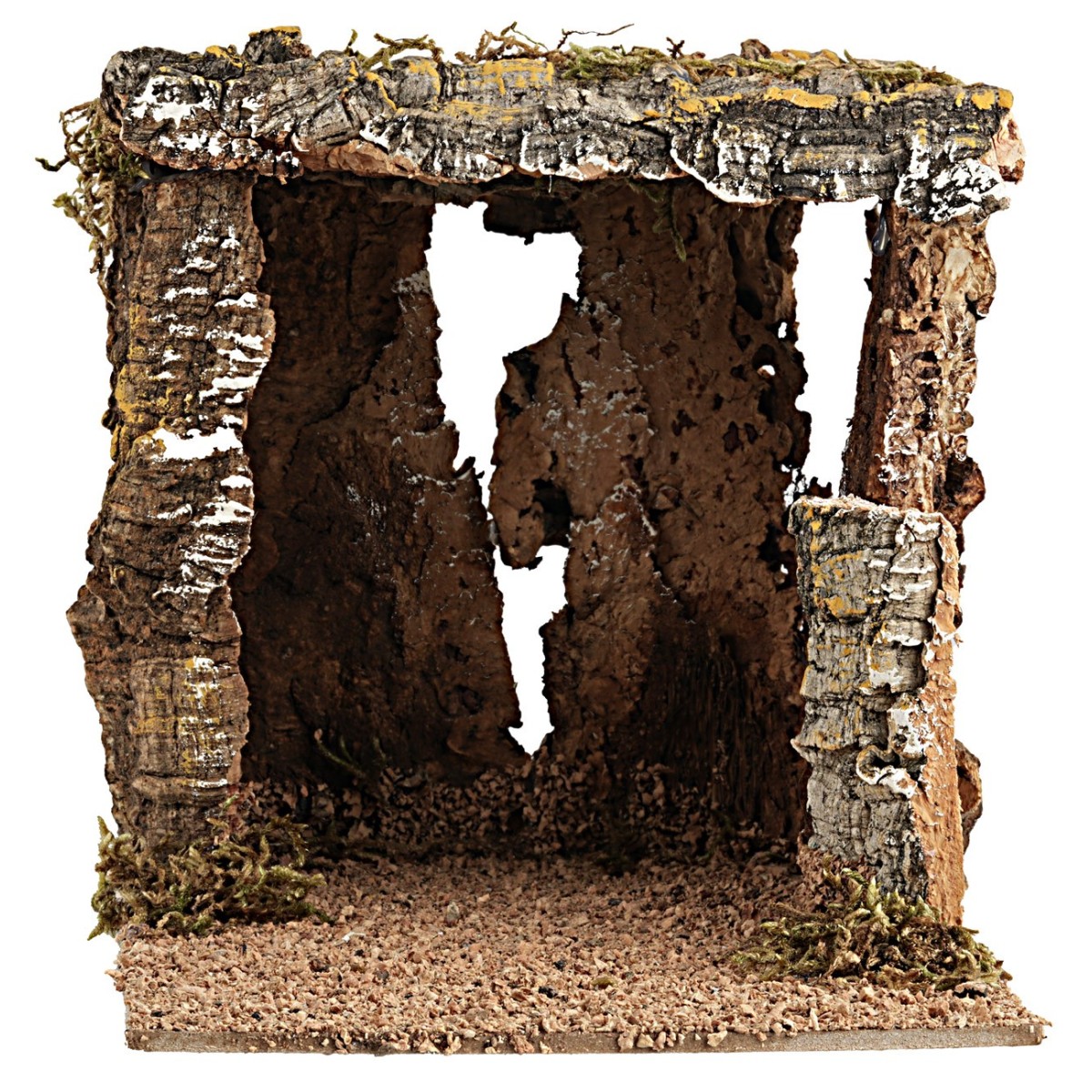 Cueva para pesebre en corteza de corcho, madera y musgo. El artículo está hecho artesanalmente en Italia y se recomienda para estatuas de altura 6-6,5 cm.