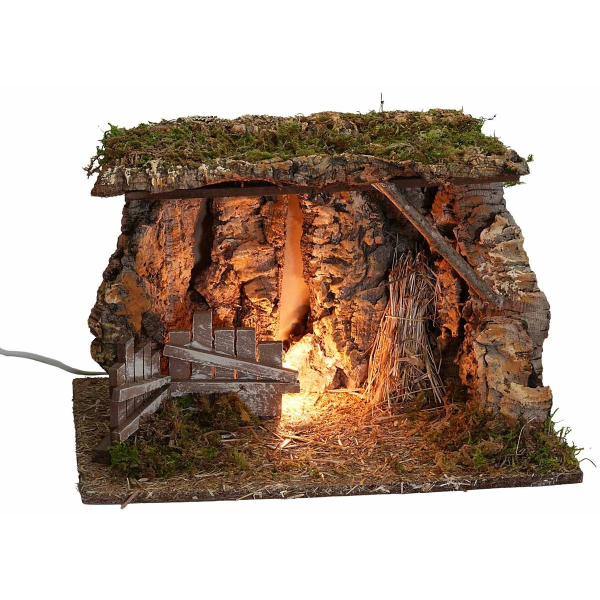 Cueva iluminada que funciona a corriente recomendada para un Nacimiento de altura de 10 a 12 cm. El artículo es producido por artesanos italianos usando corteza de corcho, madera y musgo. En las fotos del producto hay dos nacimientos diferentes con fines meramente ilustrativos, disponibles en los productos relacionados bajo la tabla.