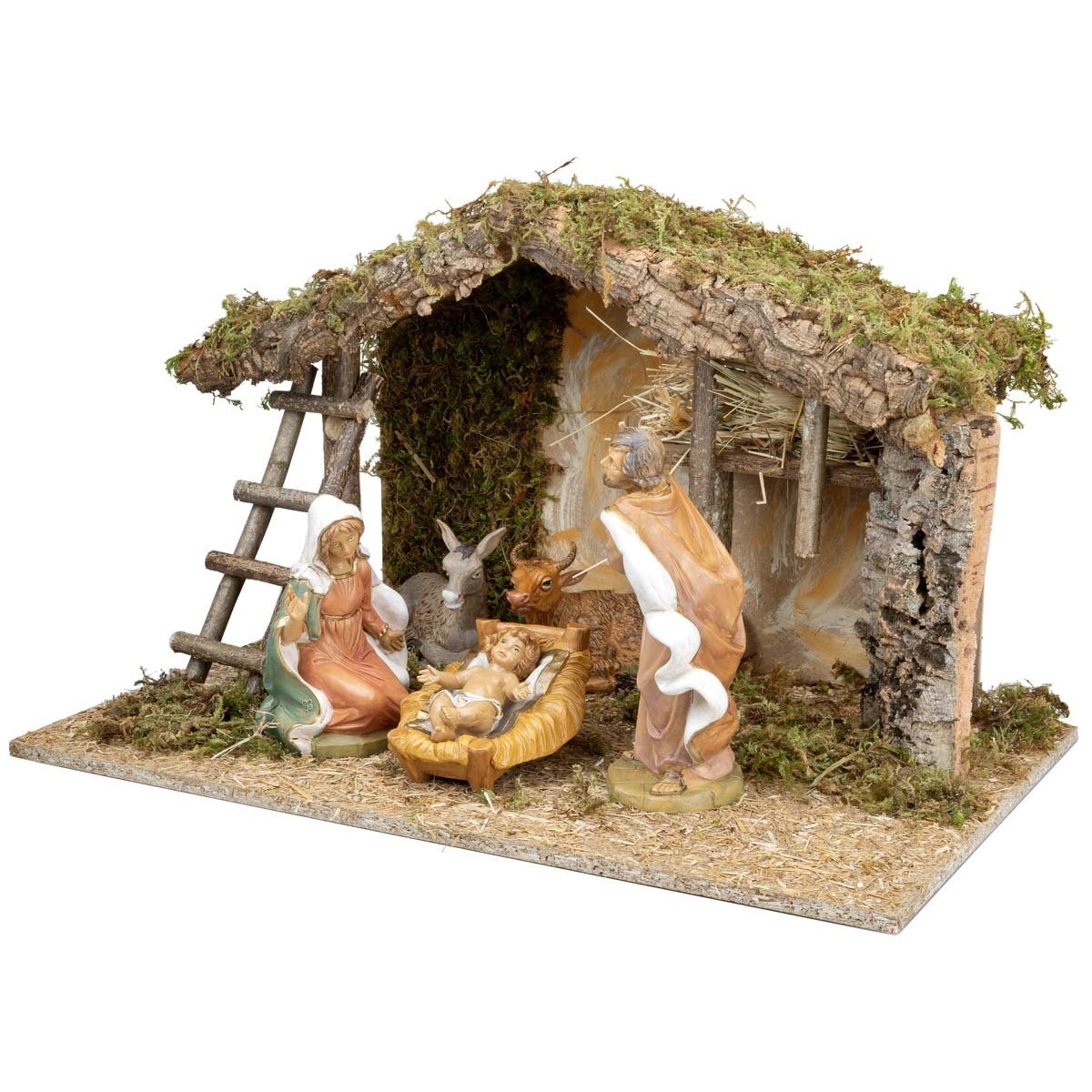 El pesebre está realizado artesanalmente en Italia con madera, corcho y musgo.