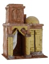 Elegante templo palestino a la izquierda un espacio dotado de entrada delineada por dos pilares dorados y por una cortina, a la derecha una entrada con puerta de doble hoja dorada que conduce hasta el piso superior, donde hay una ventana con hoja de arco de madera cerrada. El techo es plano a la izquierda y está caracterizado por una cúpula emergente a la derecha. Este entorno ha sido creado enteramente en Italia por hábiles manos artesanas utilizando poliestireno y madera, que simula el efecto piedra. Recomendado para estatuas de 10 h cm.