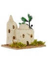 Casa palestina con palmera doble. La escenografía se presenta bien acabada: la vivienda posee la clásica estructura árabe con cúpula en el techo. Está creada artesanalmente en yeso cerámico. El uso del musgo hace que el paisaje sea muy sugestivo y natural. El producto es ideal para completar el Belén árabe con paisajes orientales a lo lejos, jugando con la perspectiva. Producto realizado enteramente en Italia por manos artesanas expertas utilizando yeso cerámico, madera, corcho y musgo.