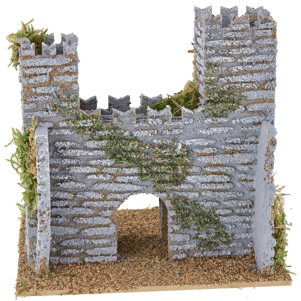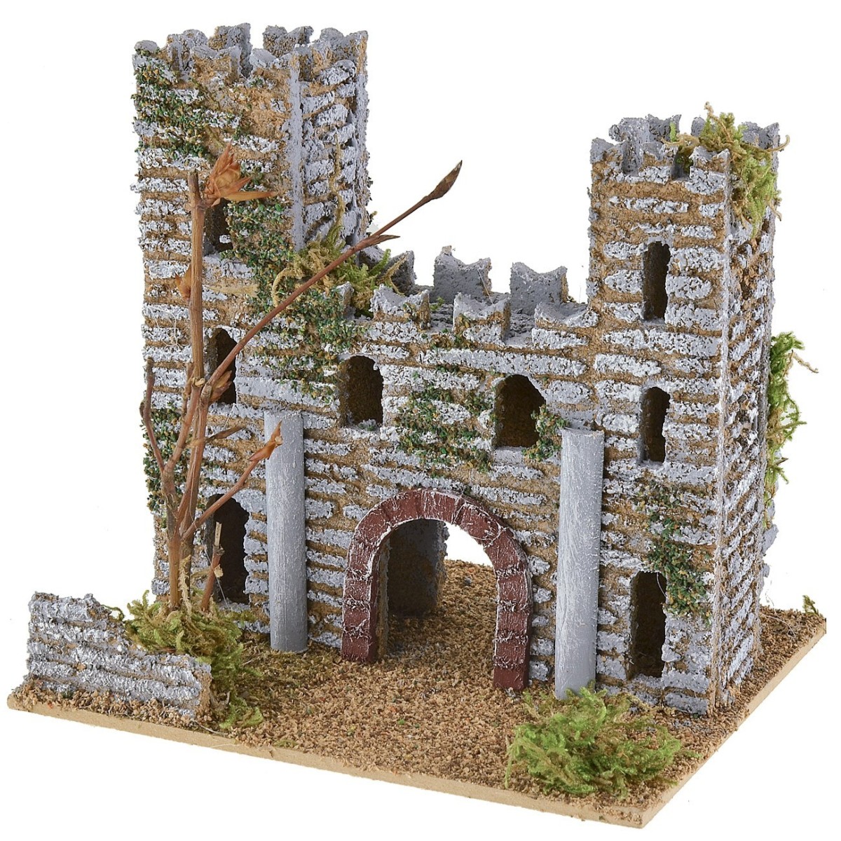 Escenografía para belén que reproduce realísticamente un castillo gibelino con dos torres laterales y un gran arco central que permite el acceso. El artículo es adecuado para estatuas de belén de altura 3,5 cm Landi Moranduzzo y ha sido producido artesanalmente en Italia con madera, corcho y musgo. Se precisa que la imagen tiene un valor puramente demostrativo y las figuritas no están incluidas, pero pueden comprarse por separado en nuestro sitio web.