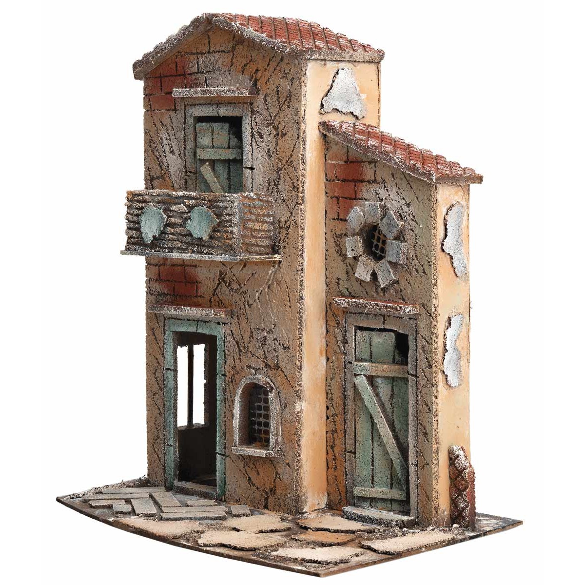 Casa napolitana de dos pisos con balcón y ventanas, recomendada para figuras de altura de 8 a 10 cm.
