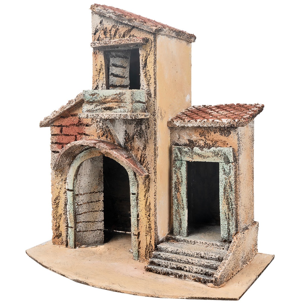 Casa napolitana en estilo rústico con arco y escalera, recomendada para figuras de altura 5-10 cm.