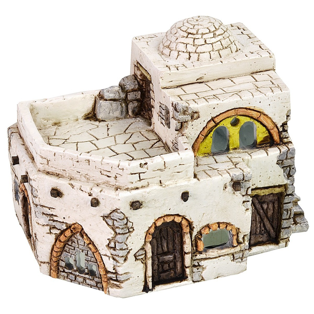 Casa Palestina de resina con terraza y varias entradas, recomendada para estatuas de 3,5-4 cm de altura. Producto muy detallado y de alta calidad.