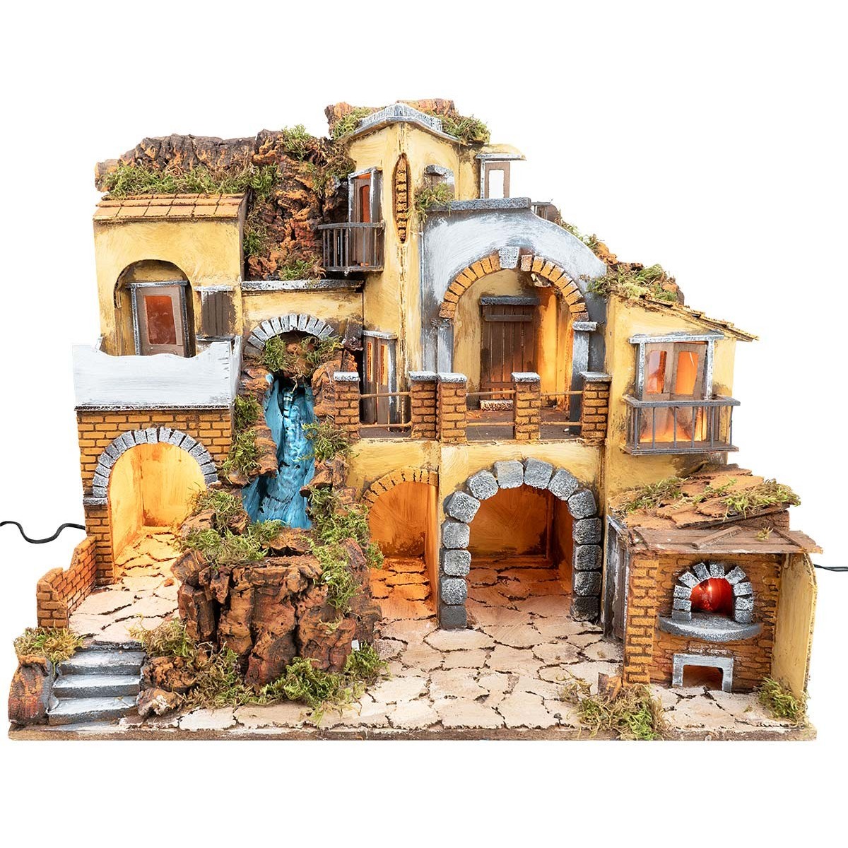 Pesebre con aldea iluminada con cascada 60x40