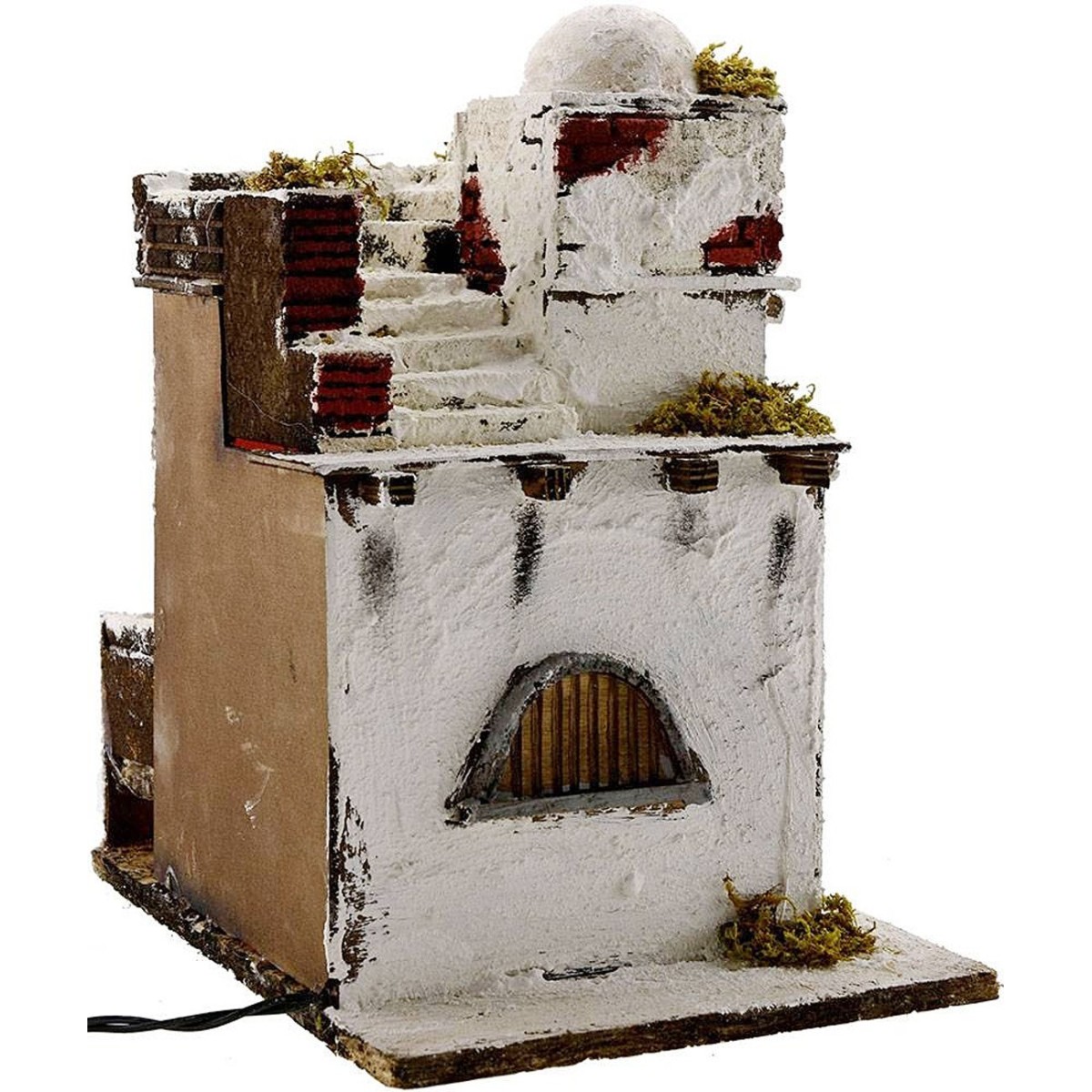 Casa Árabe para belén en madera estucada, iluminada con luz que funciona con corriente.