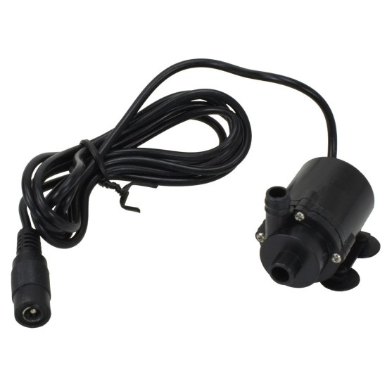 Bomba sumergible para el reciclaje del agua, funciona a 6-12Volt DC y gracias a sus dimensiones reducidas puede ser utilizada de varias maneras: para crear pequeñas fuentes, arroyos o para acuarios. En los productos relacionados están disponibles los accesorios necesarios para el funcionamiento, se precisa que para la conexión de los tubos son compatibles los siguientes con código: "TB0" mm 3x5 que se inserta dentro del conector, el "TB2" mm5x8 se calienta y se monta sobre el conector, finalmente el "TB3" mm7x10 que se monta sobre el conector.
