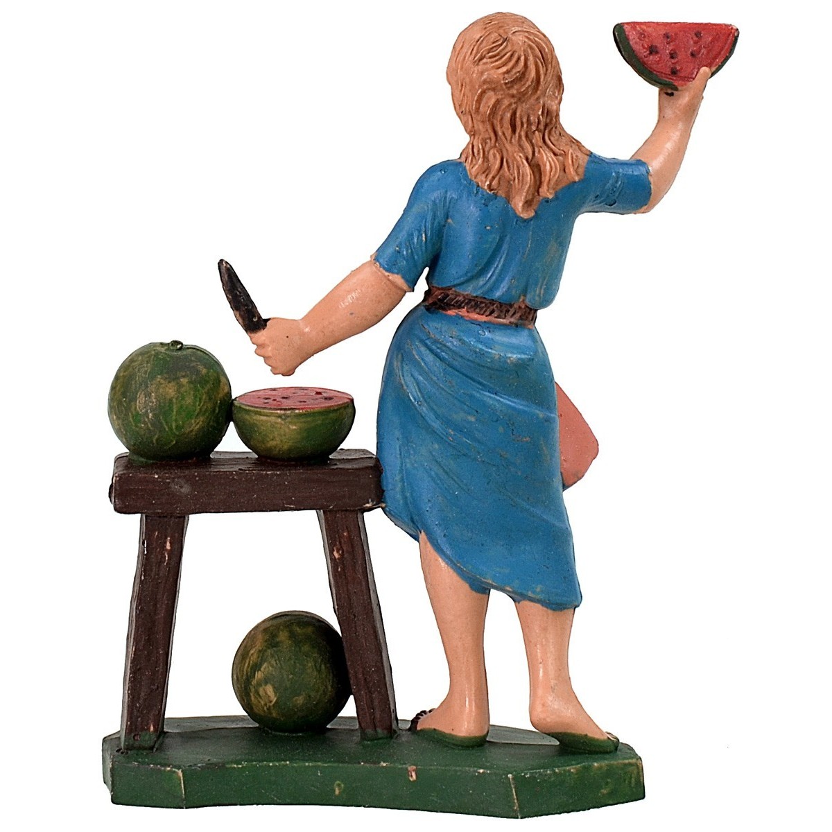 Mujer que vende sandías, serie color 12 cm en pvc. Las estatuas de la misma serie tienen rostros expresivos y bien detallados.