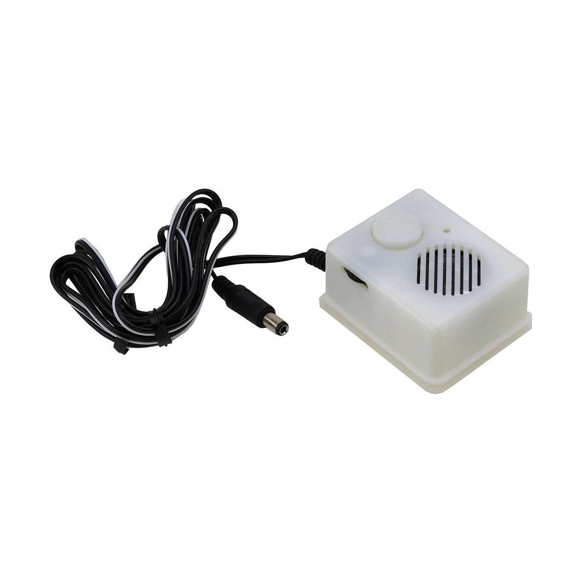 Reproductor de sonidos para belén de Frisa, se pueden cargar sonidos o archivos musicales directamente desde el PC y escucharlos en ciclo continuo. El dispositivo debe ser alimentado a 12 Voltios mediante el cable con conector, además puede ser alimentado con cable USB (no incluido). Cuando se alimenta, entra en funcionamiento y reproduce en ciclo continuo los archivos cargados. El volumen es ajustable mediante un control situado en el lateral. Para la carga de sonidos se conecta al PC mediante los comúnmente utilizados cables USB/MINI USB (como por ejemplo los cables incluidos con los teléfonos móviles), dicho cable no está incluido.