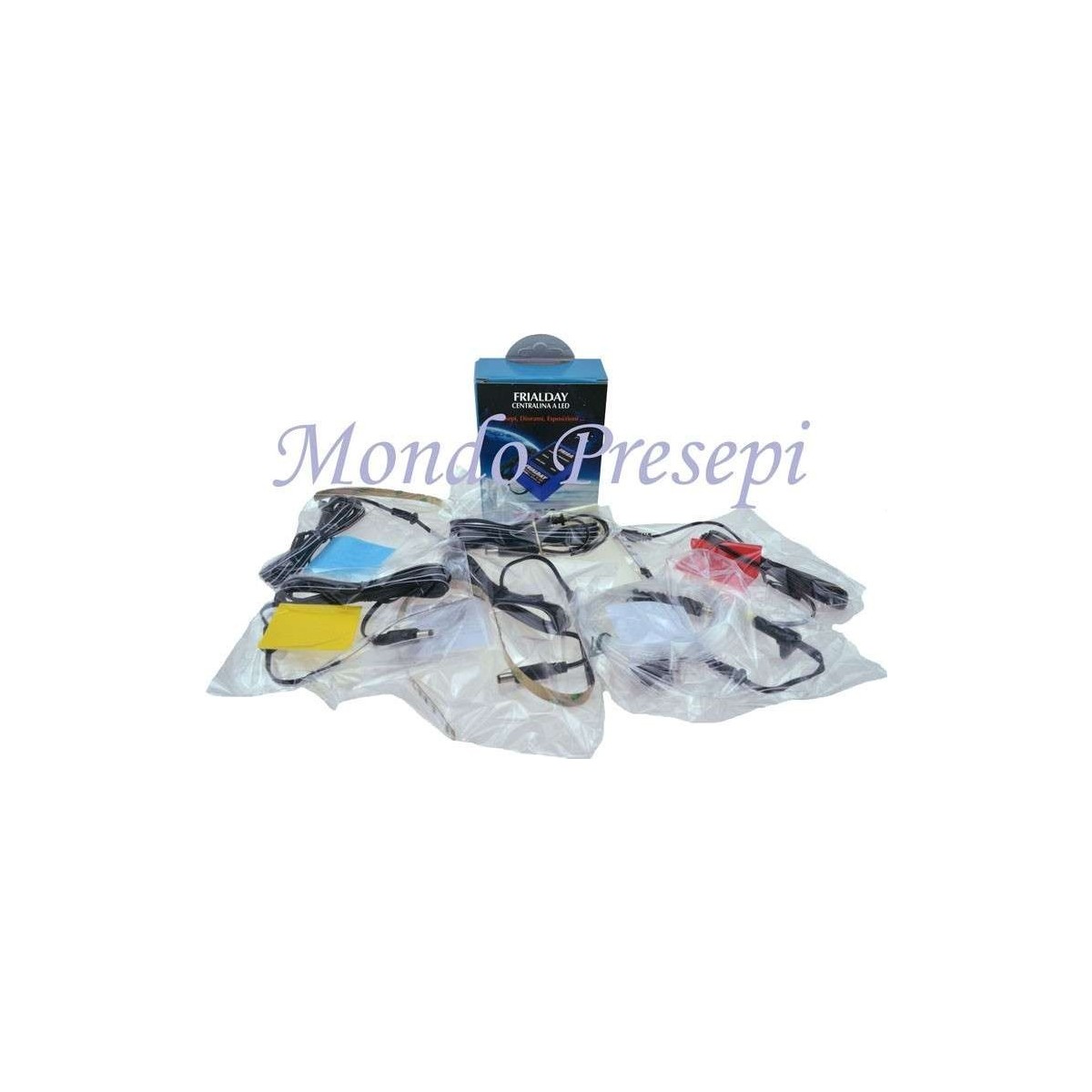El kit de oferta incluye la centralita LED FRIALDAY, además de un conjunto de accesorios perfectamente calibrados para la iluminación de un Diorama o Belén de pequeñas dimensiones.