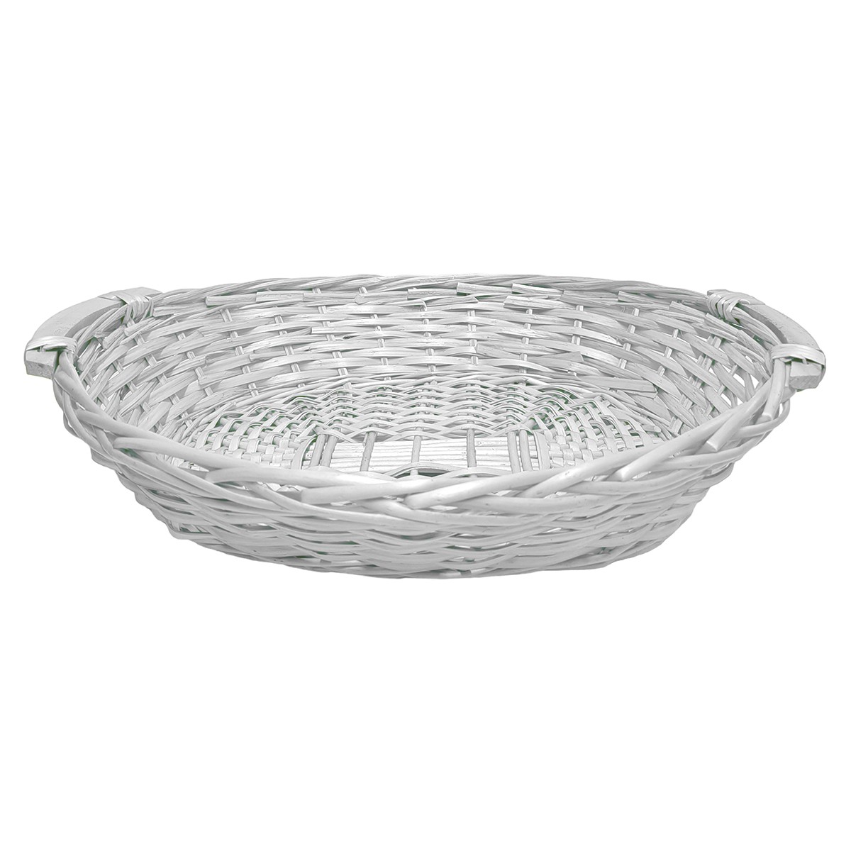 Cesta ovalada de mimbre blanco navideña, ideal para crear paquetes de regalo elegantes y originales.