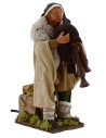 Zampognaro en movimiento. La escena resulta muy rica en detalles: en primer plano vemos al hombre balancearse a la derecha e izquierda, gracias al movimiento del torso, simulando la acción de tocar el instrumento que sostiene entre las manos. Otros elementos característicos de la escena son la verde vegetación circundante y las diversas gavillas de paja detrás del hombre. La estatua está realizada en terracota y pintada a mano en Italia por hábiles manos artesanas con ropas de tela bien acabadas. La estatua para el Pesebre clásico y/o napolitano mide 24 cm y se caracteriza por el uso de materiales como la madera, la tela y la terracota.