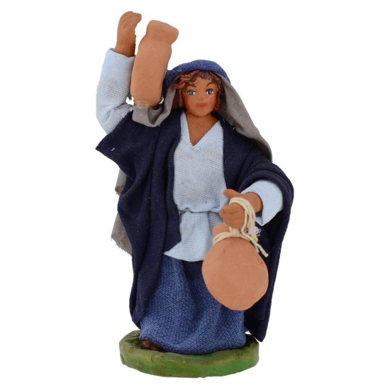 Mujer con dos ánforas, una en mano y otra sobre los hombros. La estatua está hecha de terracota bien acabada en todos los mínimos detalles con vestidos de tela endurecida, al estar realizada completamente a mano podrían variar ligeramente los colores de los vestidos y del rostro respecto a la foto. Producto artesanal realizado por los mejores artistas italianos.