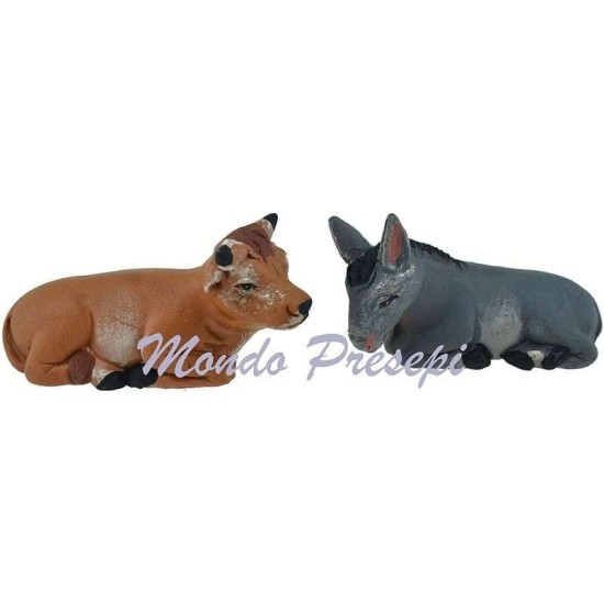 Conjunto de buey y burro en terracota, recomendado para estatuas de 9-10 cm.