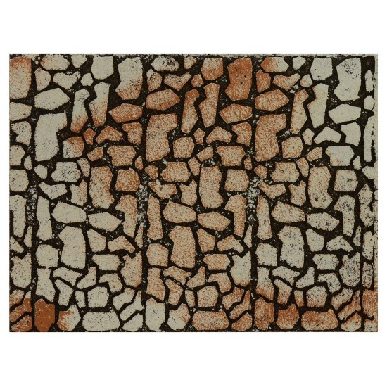 Panel de corcho coloreado con piedras grandes talladas, recomendado para realizar diversas estructuras de su belén: viviendas, pavimentaciones y muros.