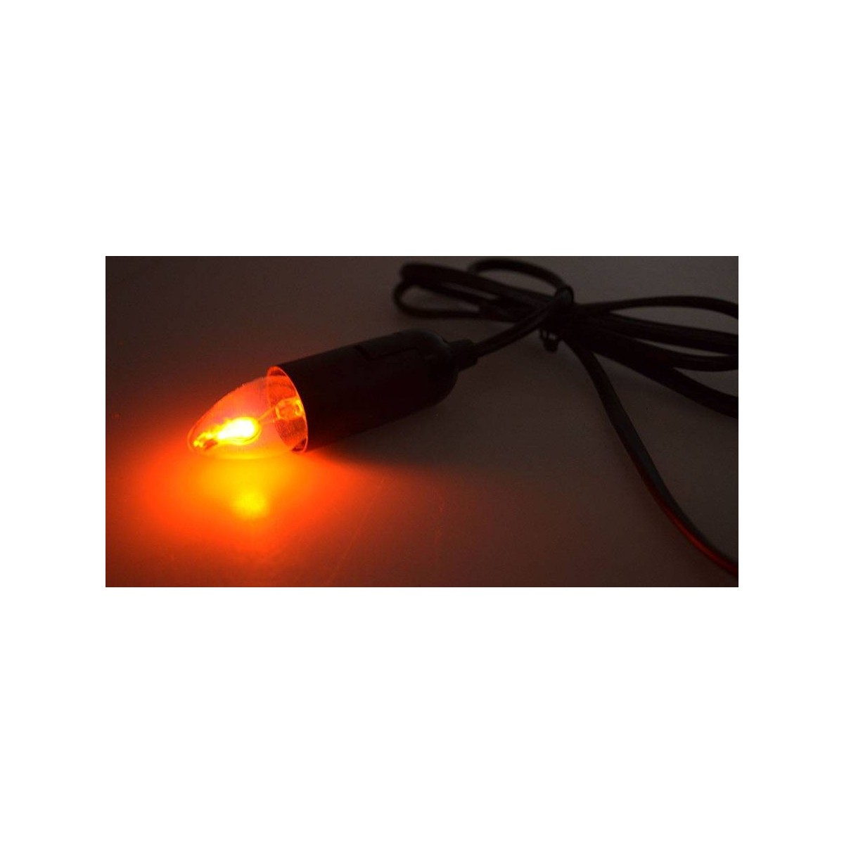 Las medidas de la lámpara efecto fuego son mm.55X23 - 1,5 W con base E14 + portalámparas E14 con cable.