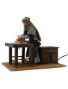 Carpintero árabe en movimiento que cepilla la madera, realizado en resina por hábiles manos artesanas italianas con un rostro muy expresivo; estatua cuidada en los más mínimos detalles, desde los colores, la ropa y el movimiento realmente muy realista y fluido. En la escena, nada se deja al azar: desde la mesa de trabajo cubierta de virutas de madera y herramientas, hasta el mueble trasero realizado con esmero.