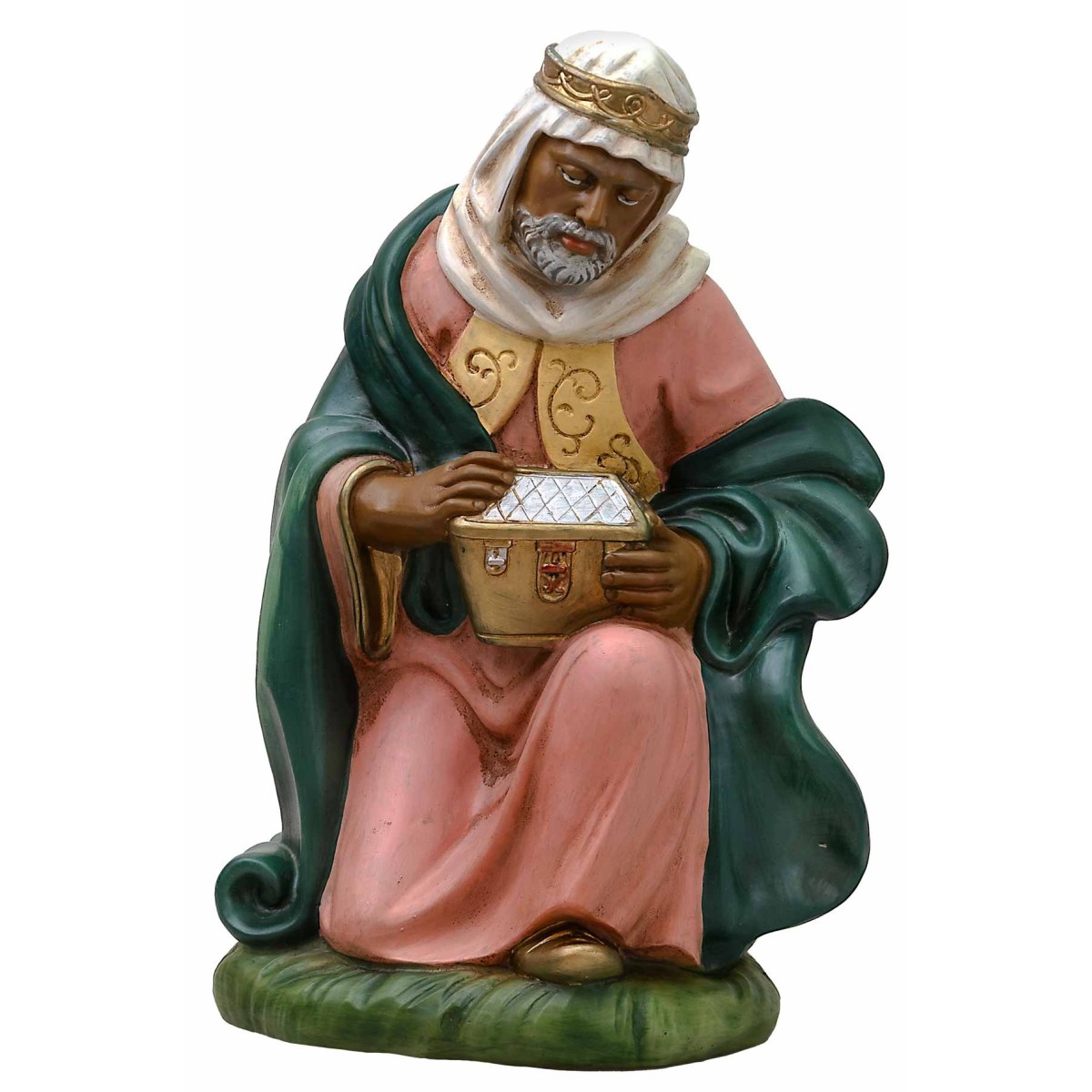 El set está compuesto por tres reyes magos con regalos. Las estatuas pertenecen a la serie Euromarchi de 53 cm, y se caracterizan por rostros expresivos y bien acabados. Este artículo es ideal también para belenes de exterior, ya que está realizado en material irrompible y resistente a los agentes atmosféricos. En los productos relacionados, debajo de la tabla, es posible encontrar las estatuas de la misma serie.