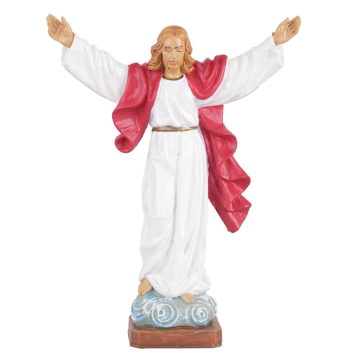 Cristo redentor con manos abiertas y levantadas al cielo de altura 15 cm. La estatua está realizada en pvc y producida en Italia.