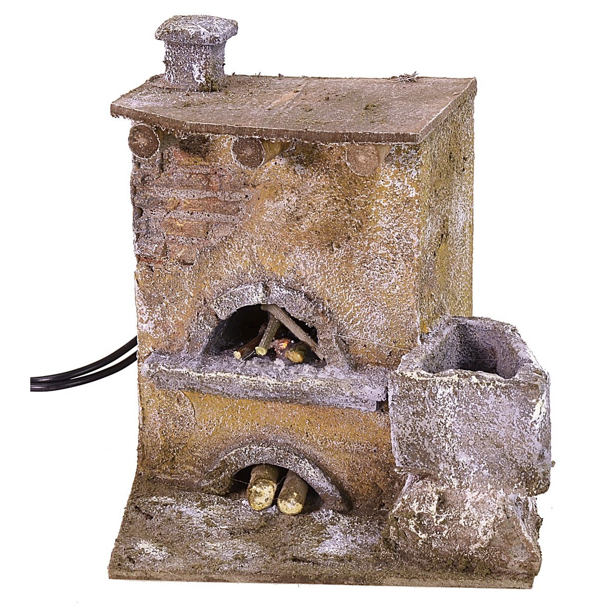 Horno (con bañera lateral para brasas o puerta para pasta) para Belén estilo clásico popular realizado artesanalmente en poliestireno y madera, recomendado para estatuas de altura 10 cm. Con luz