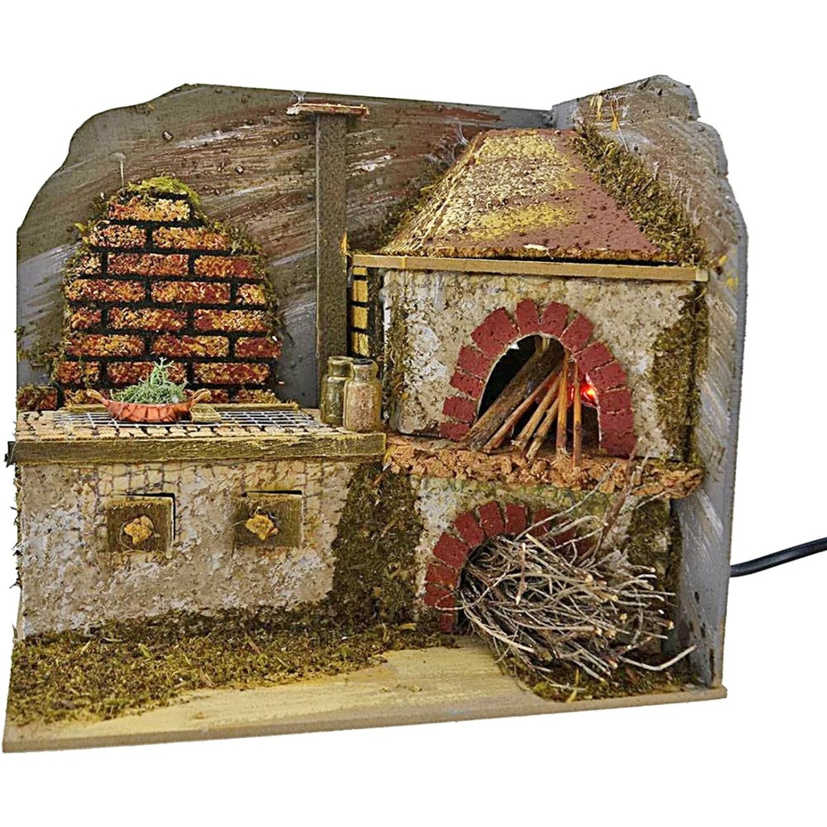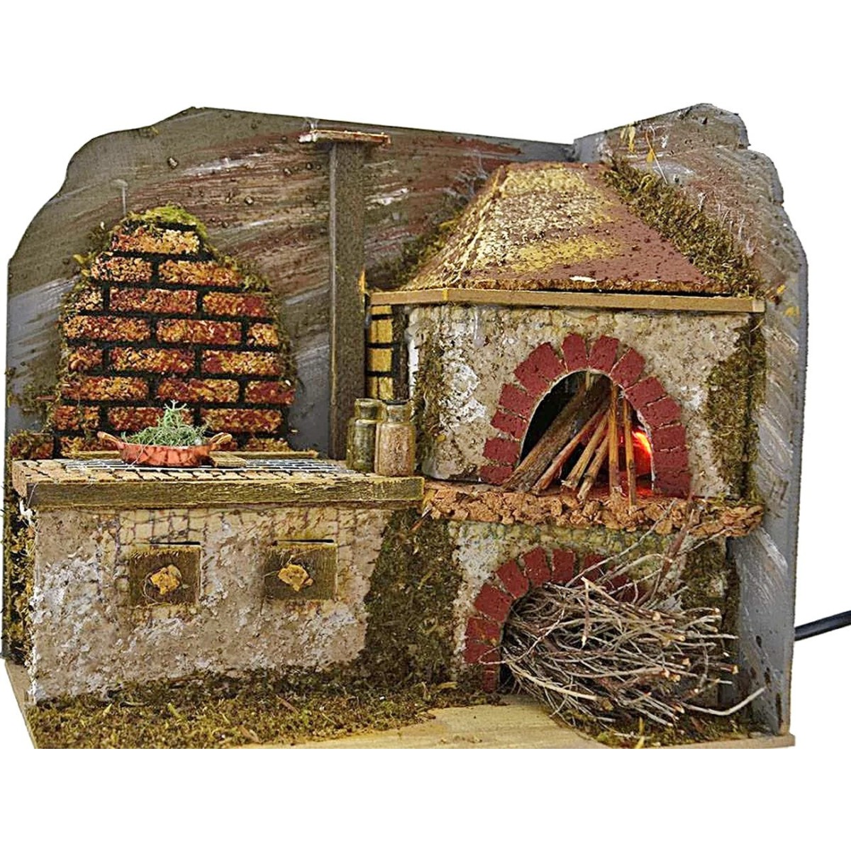 Cocina con horno con lámpara de efecto llama funcionando con corriente.