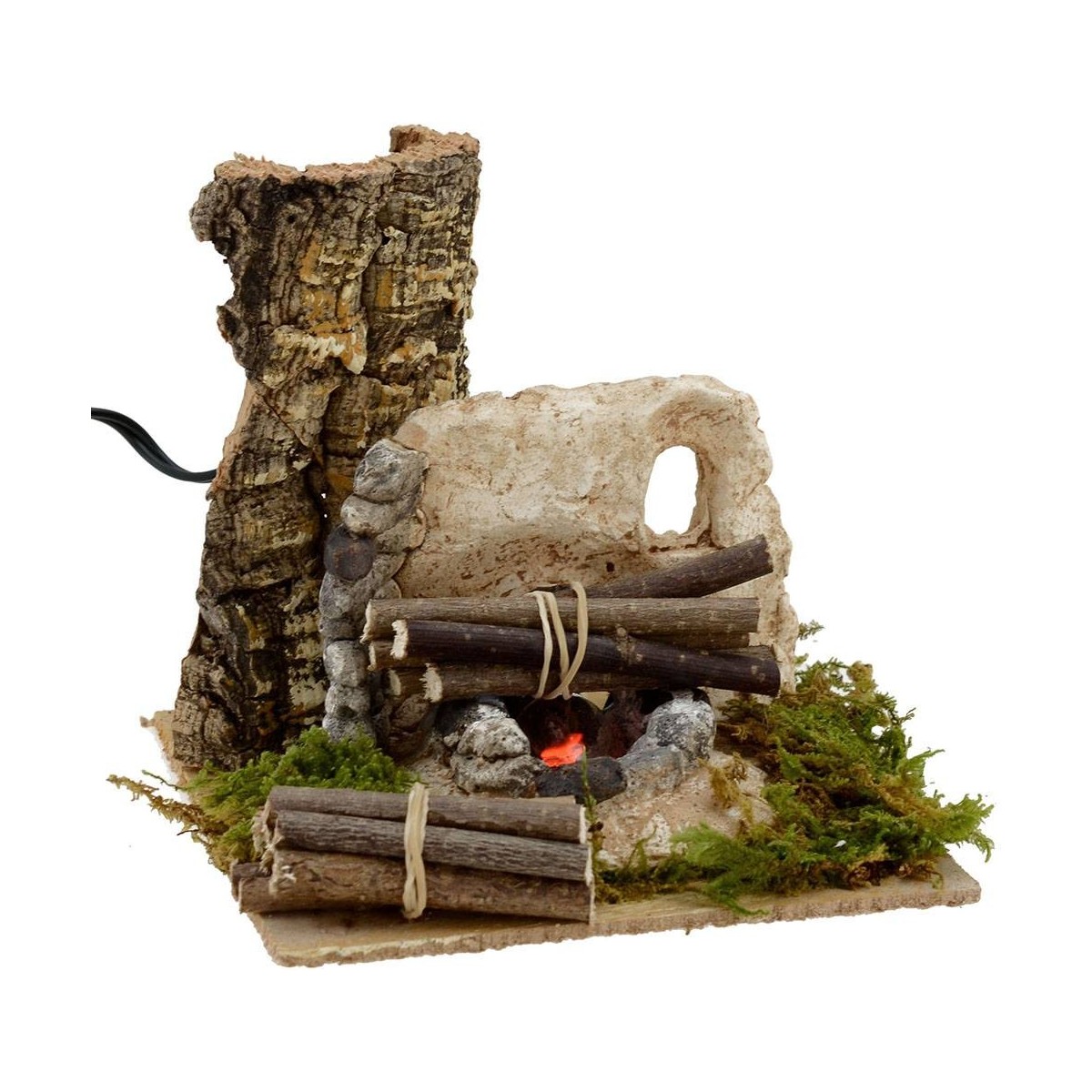 Fuego para belén funcionando con leña cm 15x15x14 h.