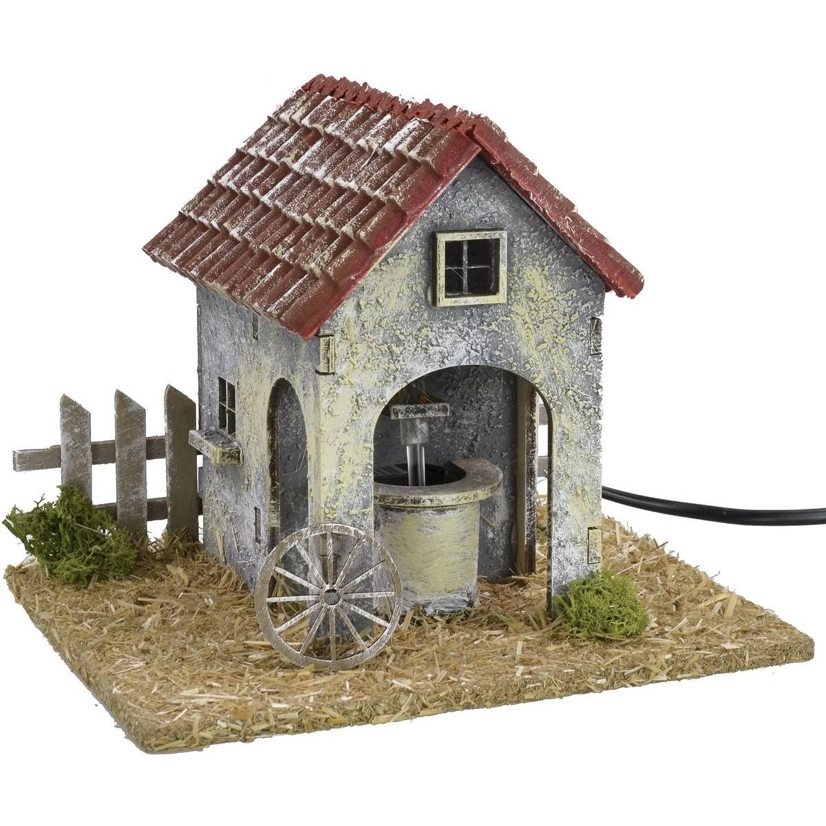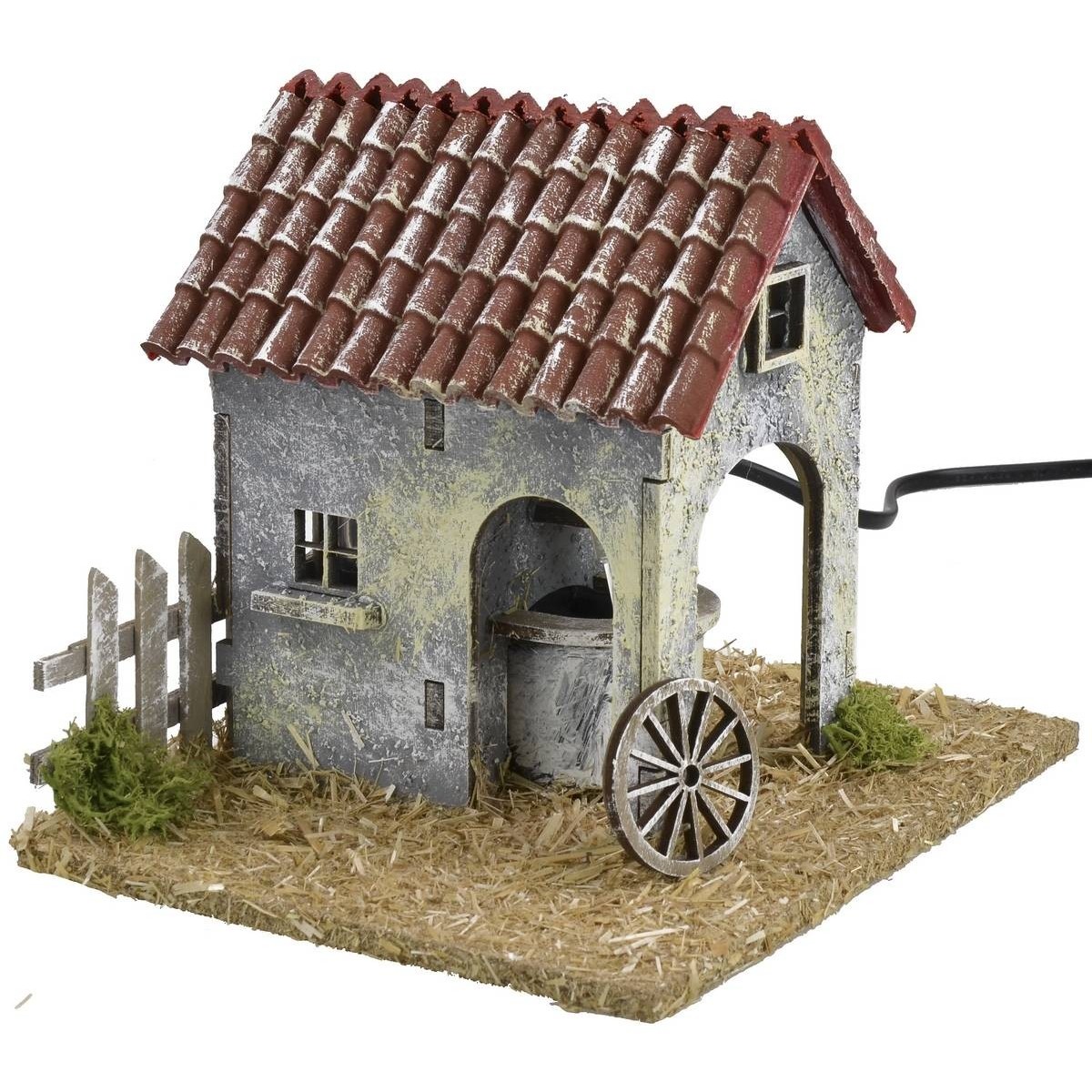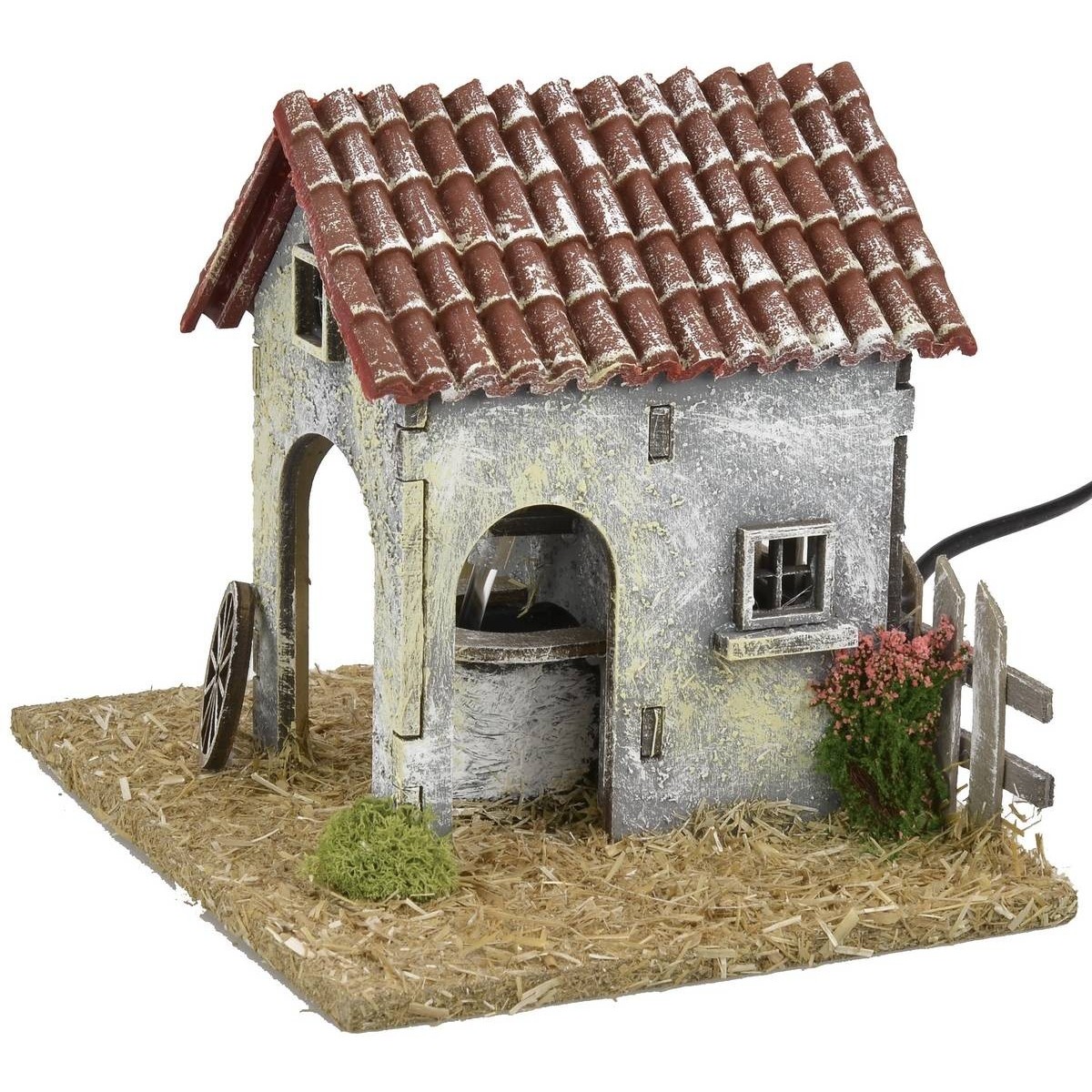 Casal bien acabado en los detalles, caracterizado por la presencia de una fuente que funciona con corriente, completa con una bomba de reciclaje de agua continuo y un lavadero. La escenografía resulta, además, muy realista, gracias a la presencia de paja alrededor y algunos mechones de vegetación creados con liquen. El producto está realizado íntegramente en Italia por manos artesanas expertas utilizando madera y decorándolo a mano. Se recomienda combinar el producto con estatuas de 6-7 h cm según sus gustos y preferencias.