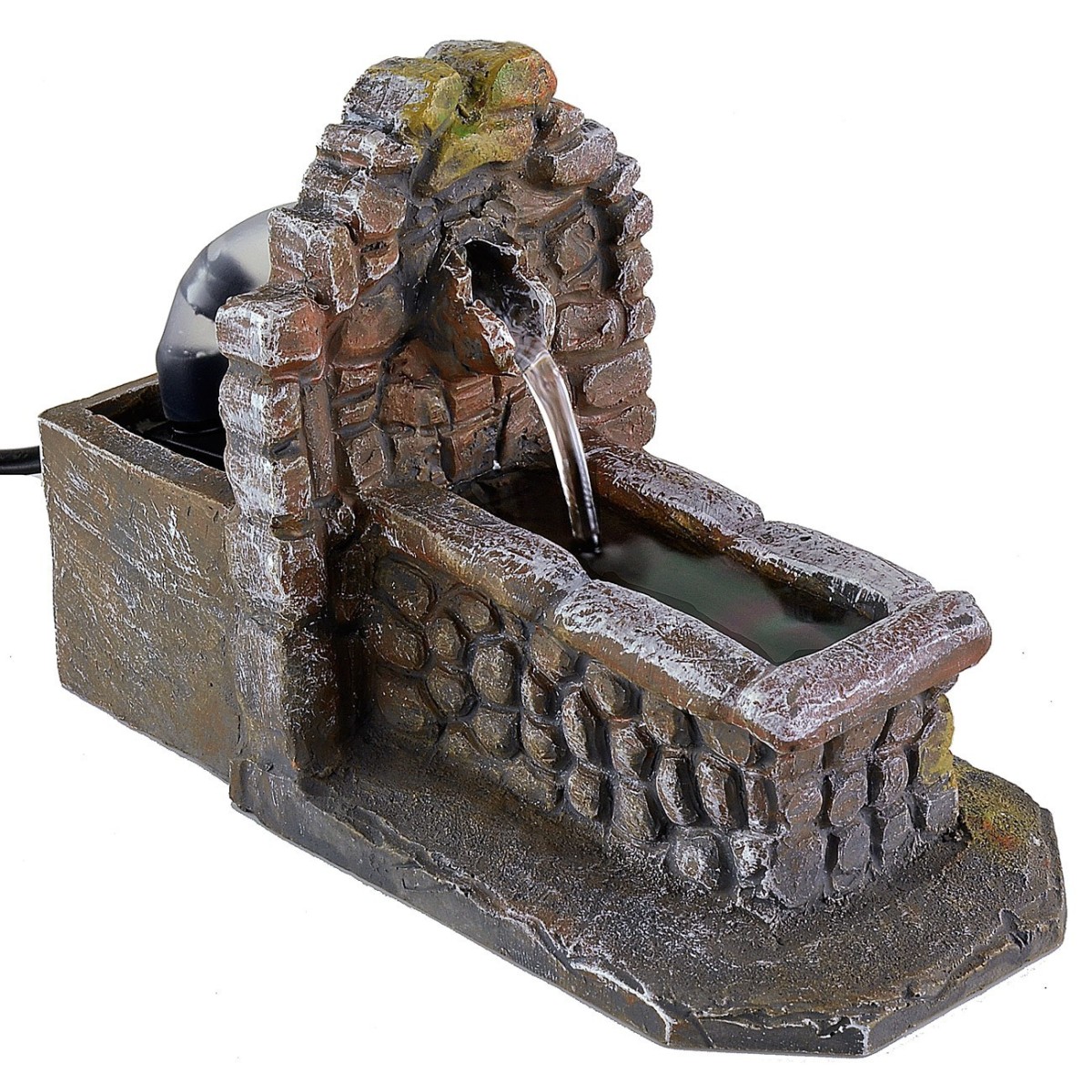 Fuente abrevadero para belén que funciona con corriente de resina efecto piedra, el agua brota de la pared y se vierte en la tina rectangular. Este artículo es recomendado para figuras de altura de 8 a 10 cm y ya está completo con una bomba para el reciclaje continuo de agua. Modo de uso: antes de insertar el enchufe en la toma de corriente, asegúrese de haber llenado completamente de agua la tina.