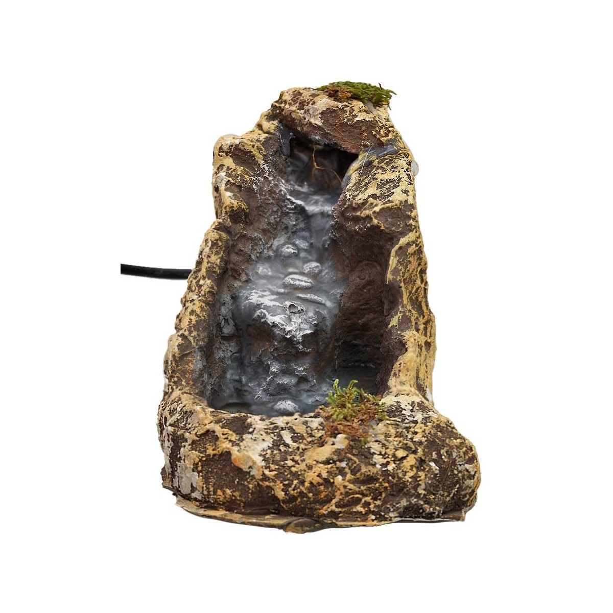 Cascada de resina a saltos, completa con bomba para el reciclaje del agua y funcionando con corriente, es el elemento ideal para enriquecer el belén con un toque de realismo. La estructura detallada y los materiales la hacen perfecta para crear un efecto escénico sugestivo.