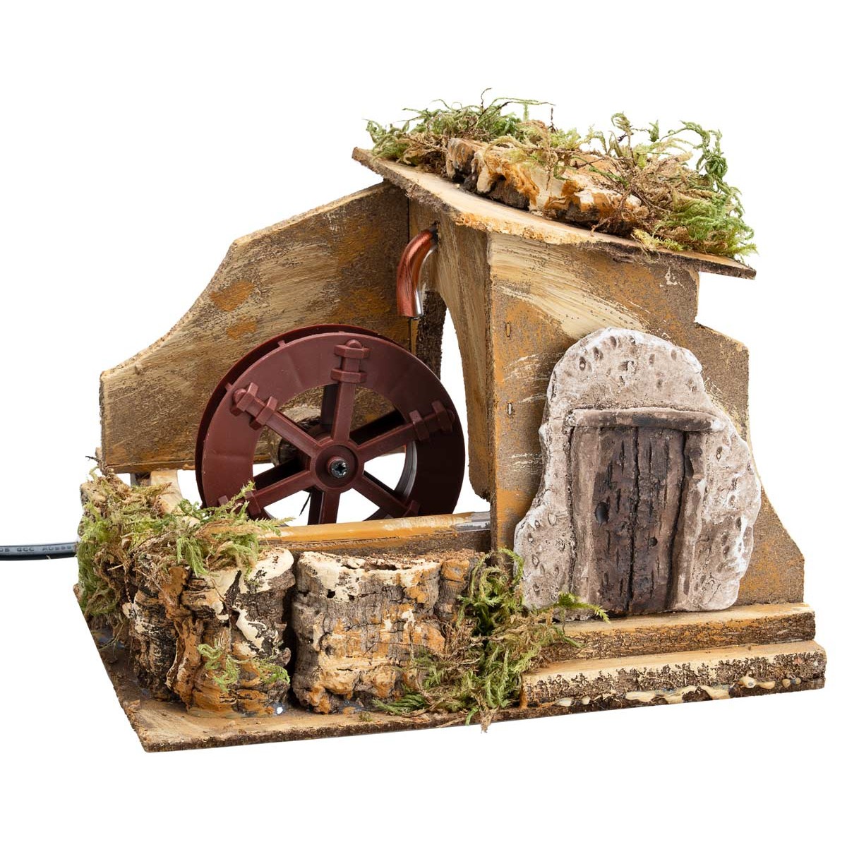 Molino de agua artesanal para belén, funcional a corriente.