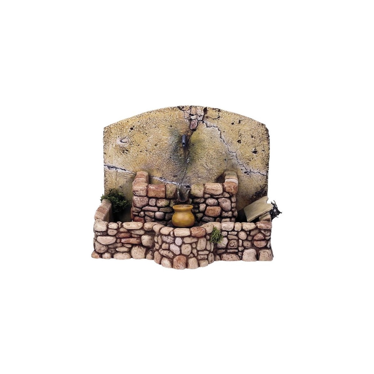 Hermosa fuente de resina pintada a mano, con agua en movimiento funcionando con corriente.