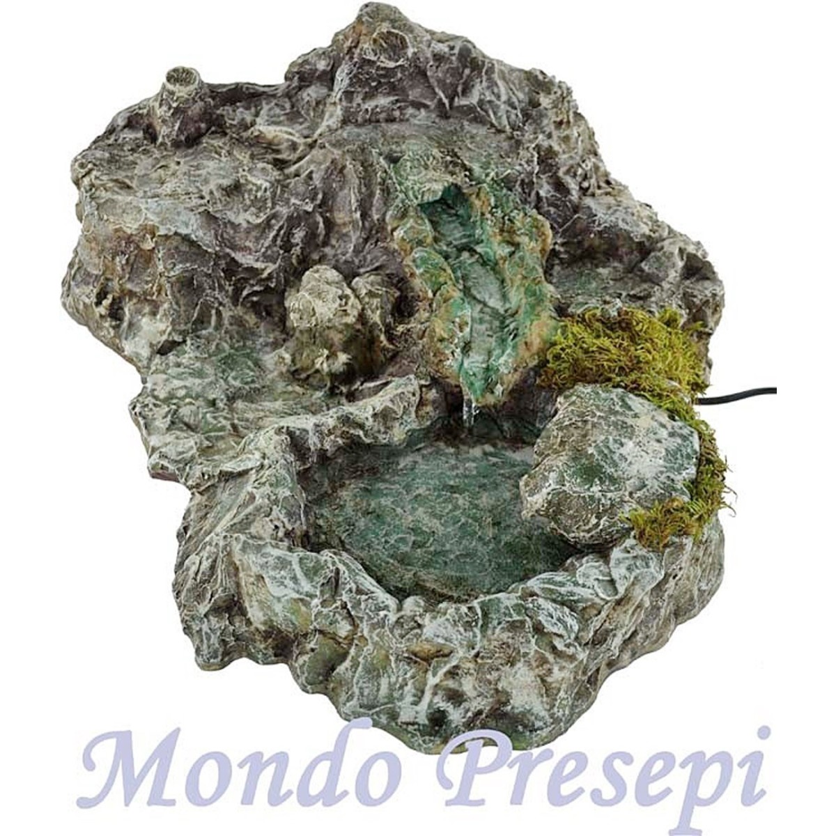 Cascada entre las rocas con lago completo de bomba funcionando con corriente. El artículo está realizado en resina y pintado a mano.