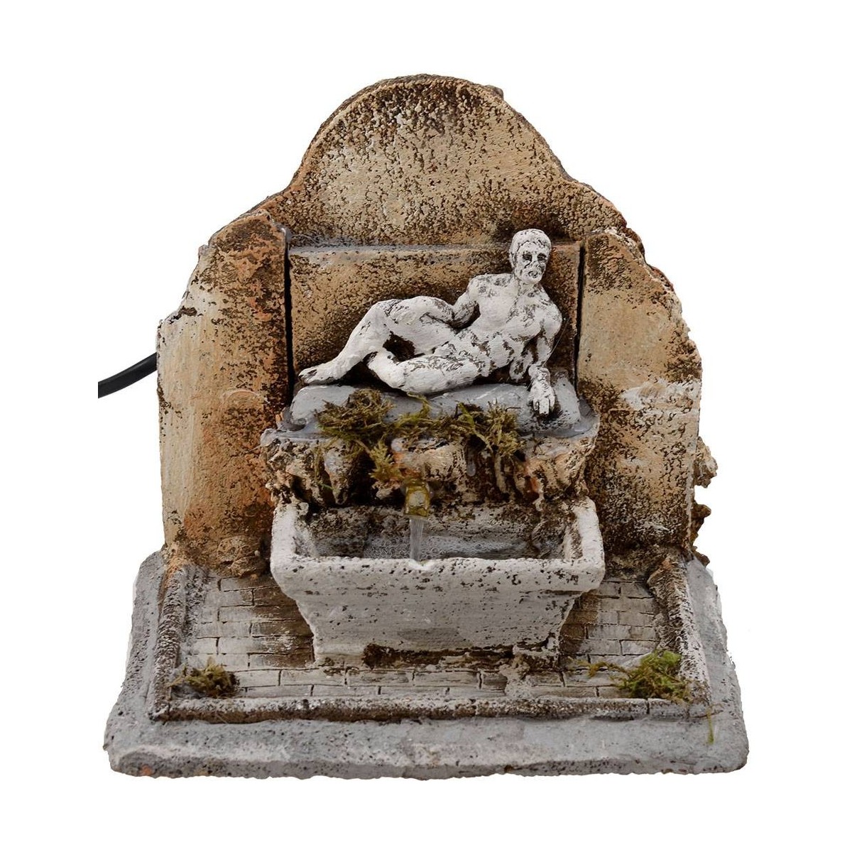 Fuente para belén de resina con estatua, completa con bomba que funciona con corriente.