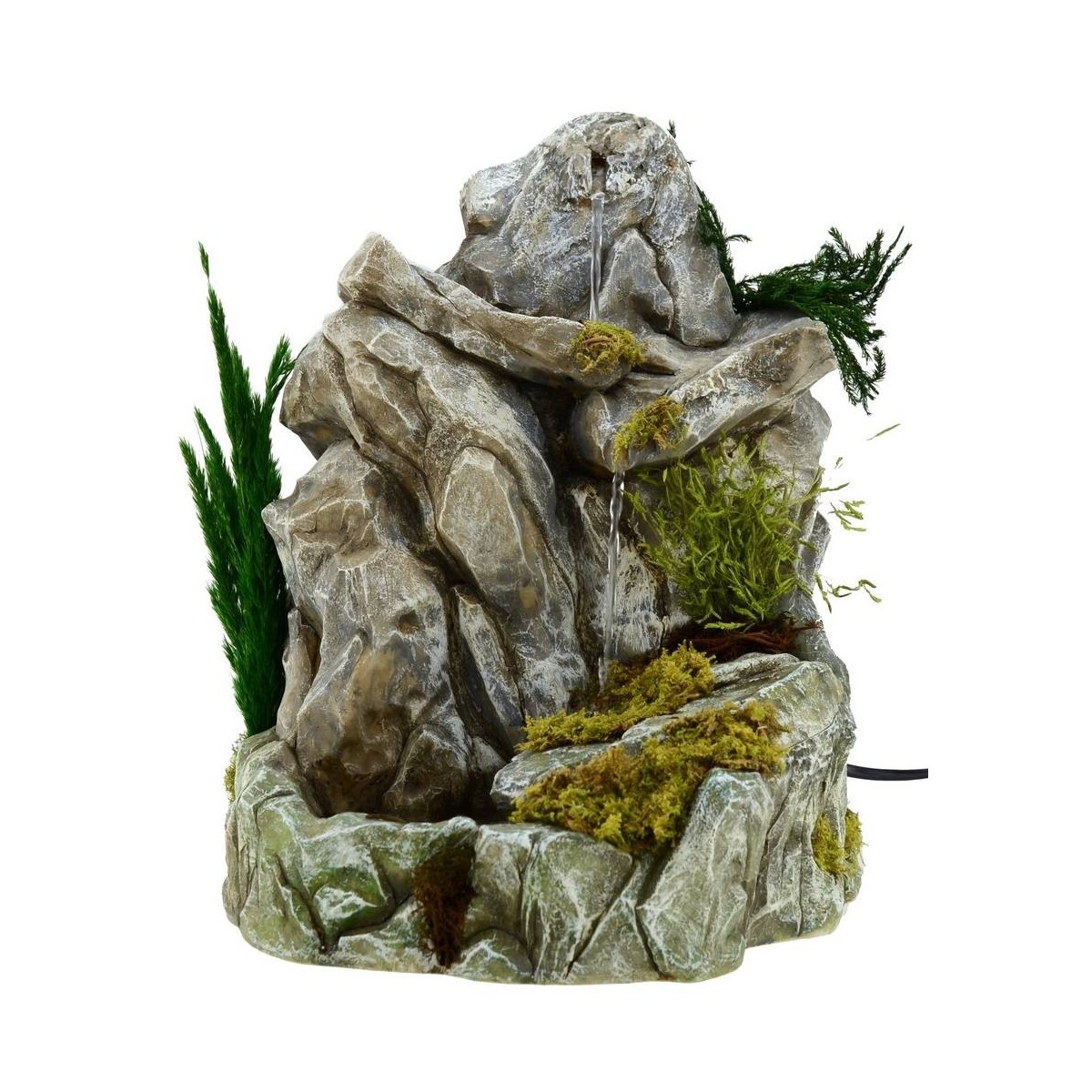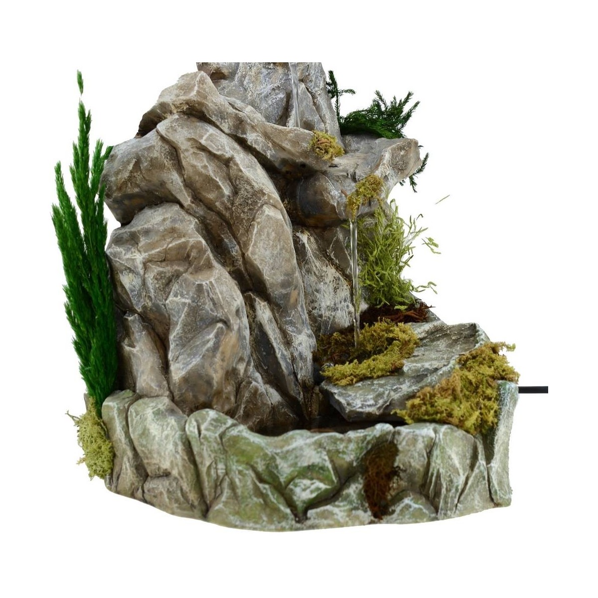 Cascada entre las rocas de resina de Pigini, completa con bomba que funciona con corriente.